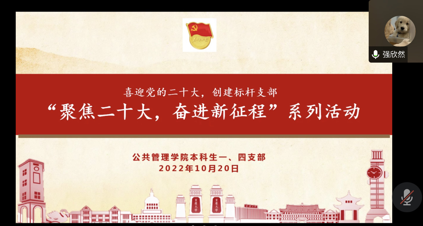 2022-10-272022年10月16日至22日,中国共产党第二十次全国代表大会在北京隆重召开。大会是在全党全国各族人民迈上全面建设社会主义现代化国家新征程、向第二个百年奋斗目标进军的关键时刻召开的一次十分重要的大会。2022年10月26日晚19点30分,69书吧 本科生二、五支部在线上开展了“强国复兴有我——学习宣传党的二十大精神”主题活动。此次活动由本科生二支部书记徐柳老师主持,本科2021级全体入党积极分子也积极参会。活动内容包...
