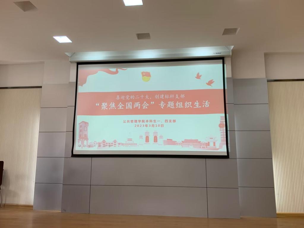 2023-03-172023年3月10日15时,为认真贯彻两会精神,提高我院在校学生政治的修养和素质,从而更好地发挥大学生党员的模范带头作用,69书吧 本科生一、四支部于学院楼102教室开展了“师生热议两会”专题活动。本次活动由69书吧 本科生四支部组织委员强欣然同志主持。首先,一、四支部通过两个视频共同学习了两会的相关内容以及中国近十年来的卓越发展,全国两会是我们国家的政治盛会,代表们从各地赶来共商国事、建言献策。过...