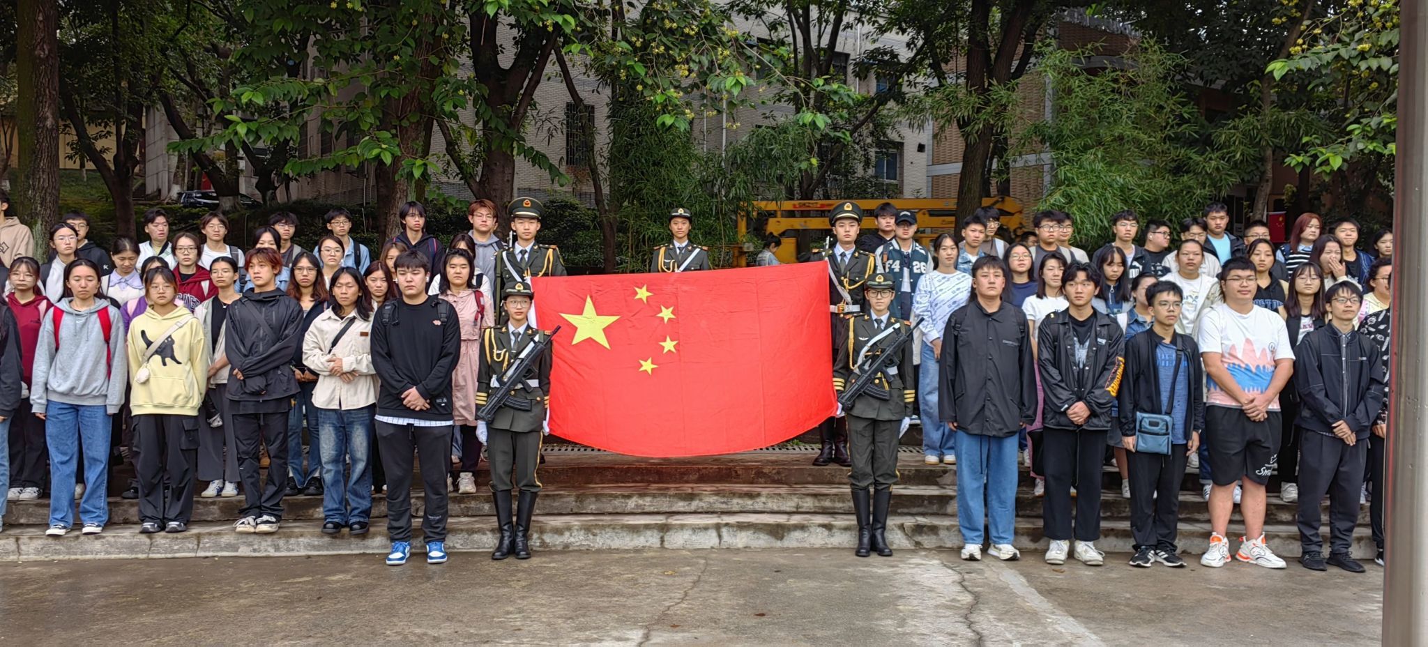 2023年10月9日上午7:30,国旗班与69书吧 本科生一、四支部在思群广场上举行了隆重的升国旗仪式,数百名同学与老师齐聚一堂,共同见证了国旗冉冉升起的时刻。在晨曦的映照下,国旗护卫队正步走向旗杆,庄严地升起了鲜艳的五星红旗,激荡起一片神圣而威武的氛围。升旗仪式的举行,象征着我们对伟大祖国的忠诚和热爱,也是对国家繁荣昌盛的美好祝愿。随后在国旗下,2022级经济学1班王焙琪、朱雨、黄丹怡、牛佳琪四位领誓人宣...