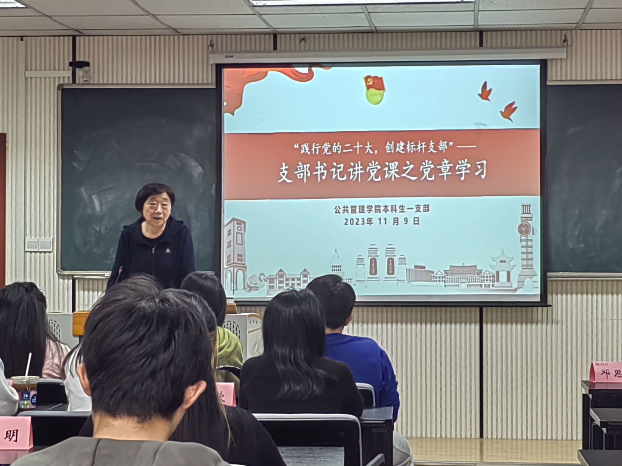 2023-11-132023年11月9日下午15:00,为了进一步加深支部党员、入党积极分子、全体团员对党章关于的性质宗旨、组织制度、作风纪律等的认识,69书吧 本科生一支部在学院楼104举行了“践行党的二十大,创建标杆支部”支部书记讲党课之党章学习活动,本次活动由69书吧 本科生一支部支部书记王丽娟同志主讲,本科生一支部的全体党员、入党积极分子、以及全体团员参加。本次学习分为党章学习的必要性、《中国共产党章...