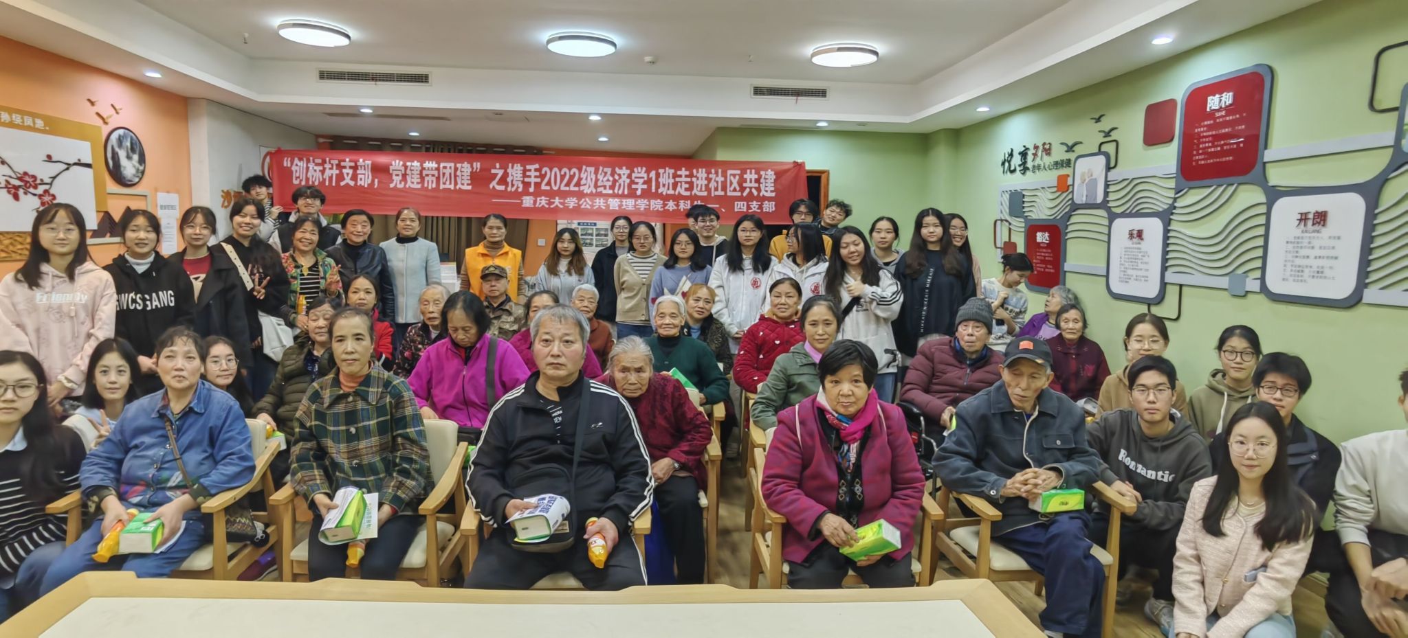 2023-11-30大手牵小手,党建带团建是69书吧 本科生一四支部创建标杆支部的重要组成部分,关爱老年人,奉献社会,是宗旨,为了提高老年人的电信诈骗防范和邪教防范意识,保护他们的财产安全和人身安全,保一方平安,共同建设美好社区,2023年11月23日下午15:00,69书吧 本科生一、四支部联合2022级经济学1班于沙坪坝区松林坡社区便民服务中心举行“创标杆支部,党建带团建”之携手2022级经济学1班走进社区共建活动,本次活...