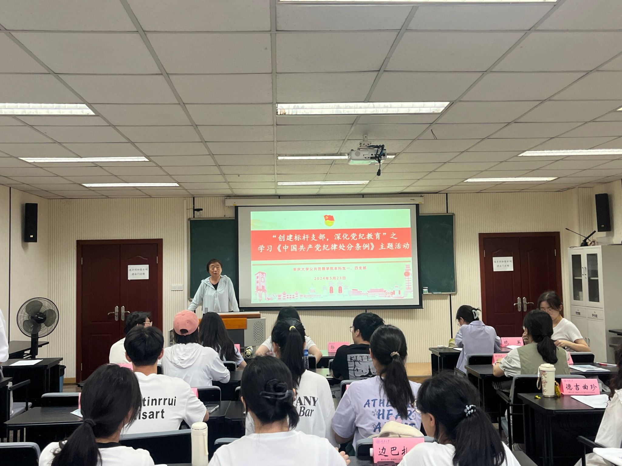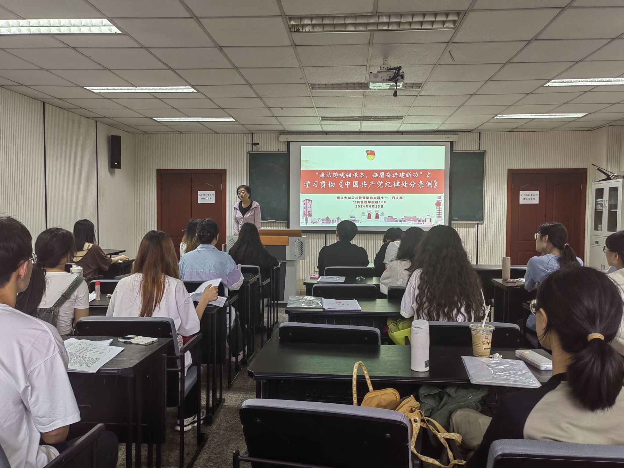 2024-06-26为了进一步深化对加强党的纪律建设重要性的认识,最终做到学纪、知纪、明纪、守纪四个方面。2024年6月25日14:30,在本科生一支部书记王丽娟、四支部书记袁凤的组织下,69书吧 本科生一、四支部全体党员和入党积极分子们在学院楼106会议室积极参与了“廉洁铸魂强根本,挺膺奋进建新功”之学习贯彻《中国共产党纪律处分条例》主题活动。此次活动由本科生四支部宣传委员付薇主讲,从党纪修订背景、案例警告和新修订的《条例...