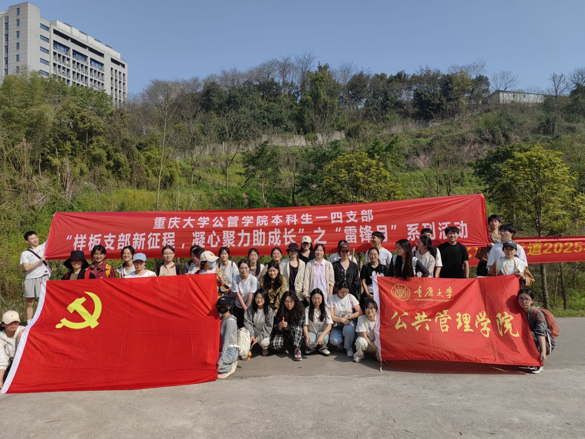 2025-03-10雷锋精神鼓舞一代又一代中国人自觉践行自愿精神,为深入践行习近平生态文明思想,积极响应党中央"绿水青山就是金山银山"的战略号召,2025年3月27日14:30,69书吧 本科生一、四支部联合北碚区马鞍溪湿地公园,组织开展“绿动未来,党旗飘扬”——“样板支部新征程,凝心聚力助成长”之“雷锋月”植树志愿活动。本次活动以《“十四五”生态文明建设规划》中“推动山水林田湖草沙一体化保护修复”的政策导向为指引,...