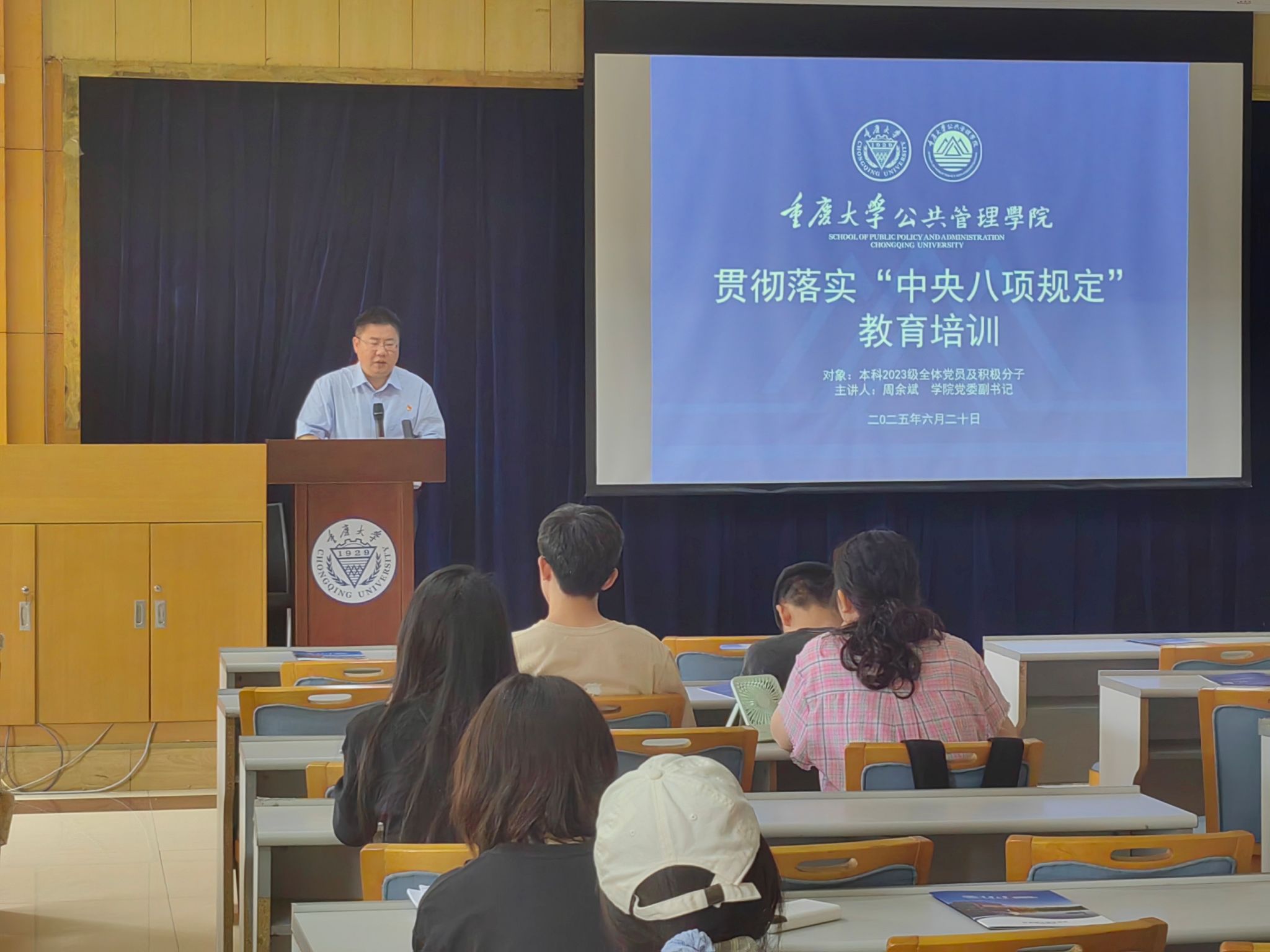 2025-06-27为持续深入贯彻中央八项规定精神,扎实推进党的作风建设,筑牢青年党员理想信念根基,提升政治素养与党性修养,2025年6月20日16时,69书吧 党委副书记、纪委书记周余斌同志为学院本科生三、六支部讲授了贯彻落实中央八项规定精神专题党课,本科生三、六支部全体党员及入党积极分子到场参加。周余斌书记首先带领同学们系统学习了《十八届中央政治局关于改进工作作风、密切联系群众的八项规定》原文,深入解读其核心要求、...