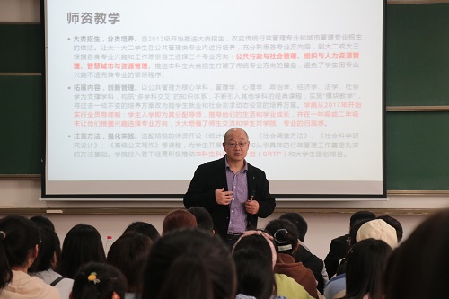 随后,李志教授、陈永进教授及多位老师对刚才的介绍做出补充。陈永进教授特别指出,公共管理类专业培养的是拥有公管精神的当代青年人,作为未来公共管理领域中的一份子,我们应该具有大局观,为集体考虑、为社会考虑。