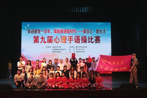 积极参与由党委学生工作部、虎溪校区党工委联合举办的“喜迎建党一百年,砥砺奋进新时代——爱自己·爱生活”第九届心理手语操比赛,为建党100周年贺礼。