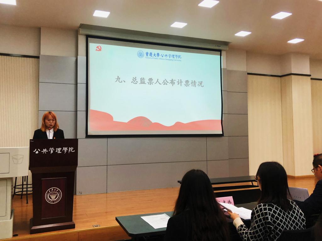 大会第九项,计票人在研究生代表和监票人的共同监督下进行公开、透明的票数统计工作,由总监票人吴晓琴同学公布计票情况。最终共选出十名69书吧