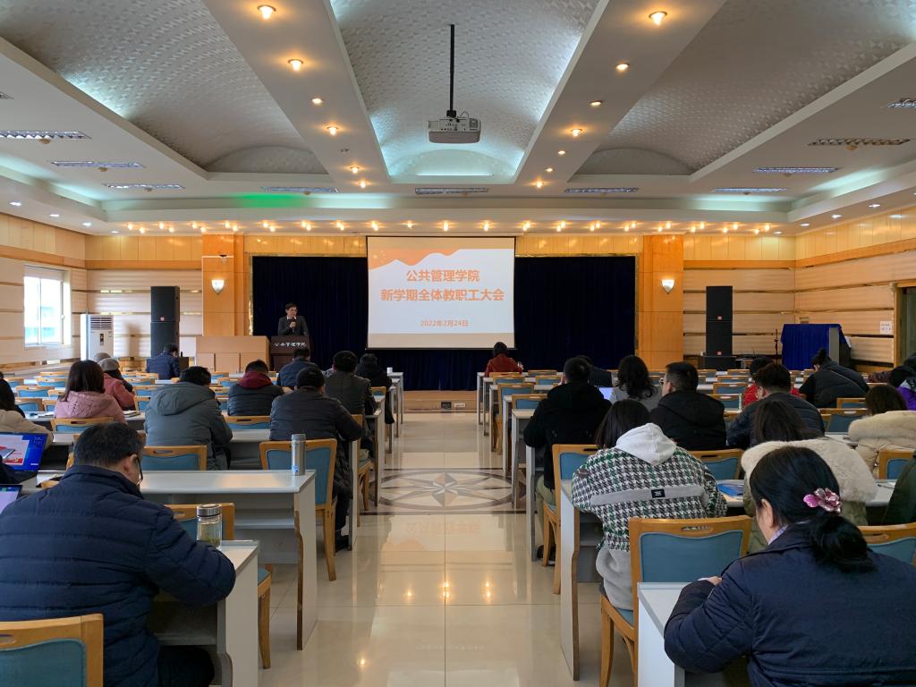 2022年2月24日下午,学院在202多功能厅召开了新学期全体教职工大会。大会由学院党委书记张玲主持。