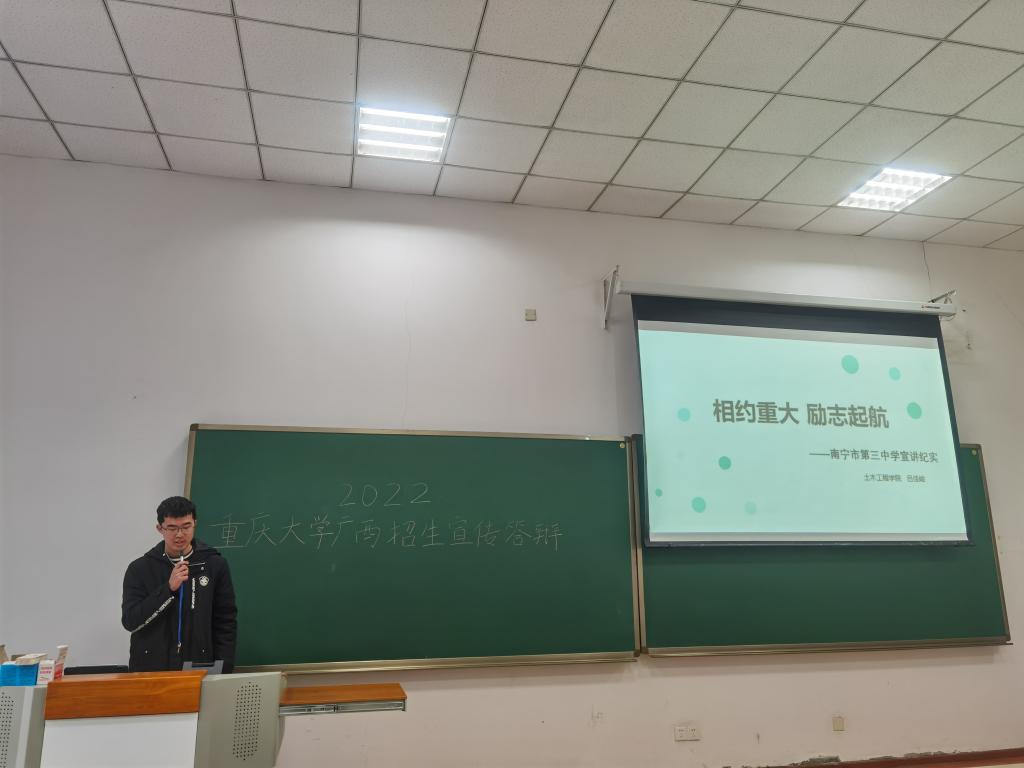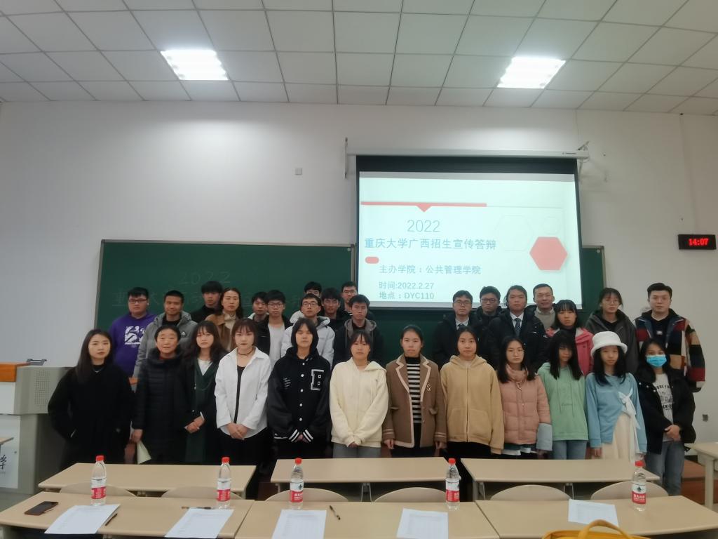 广西招生宣传答辩在虎溪校区DYC110教室准时开始。本次答辩比赛由69书吧