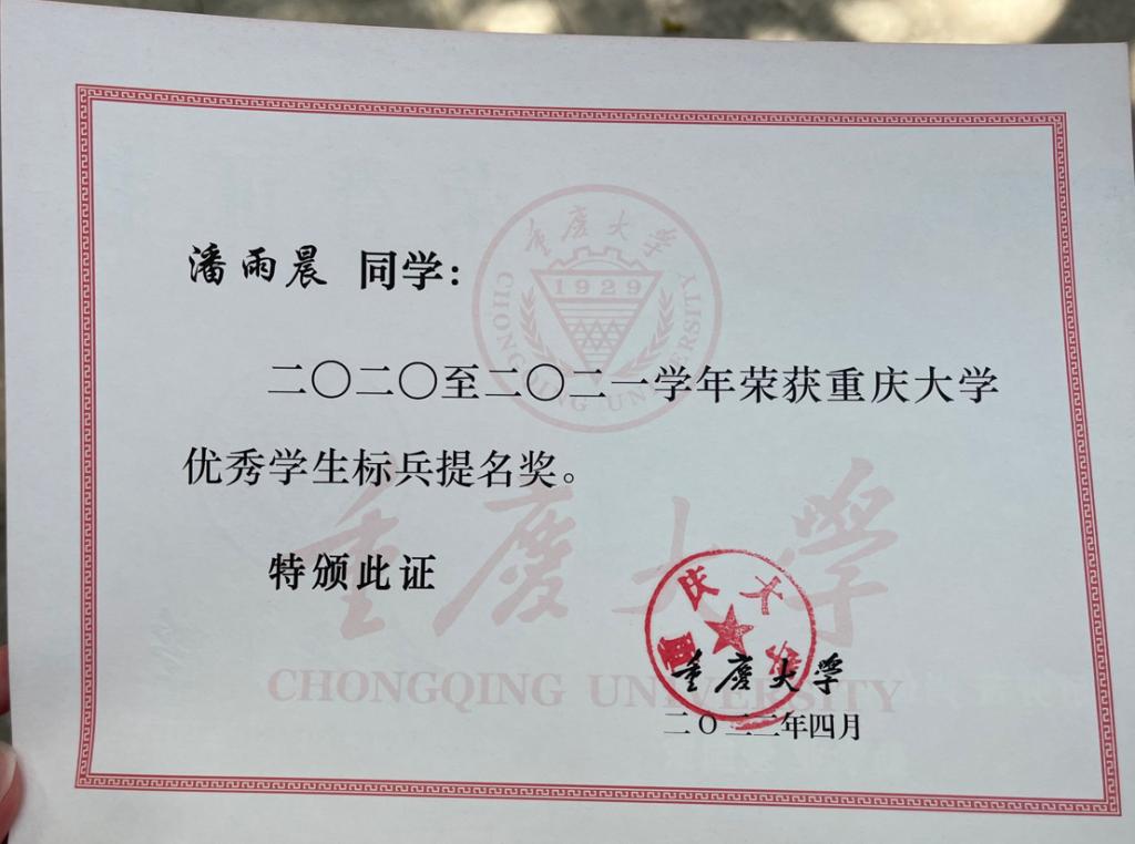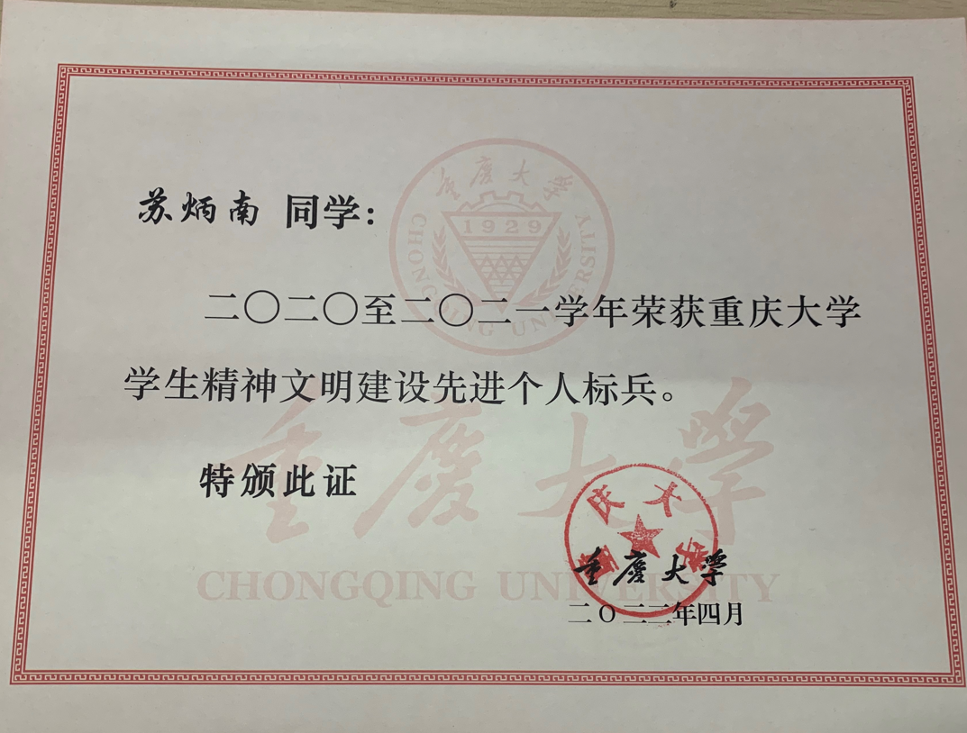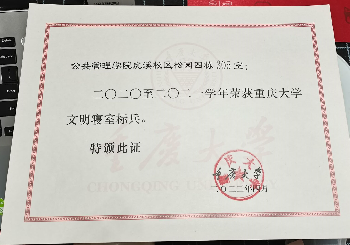 学生精神文明建设先进个人标兵;2018级虎溪校区松园四栋305室荣获2020-2021学年69书吧