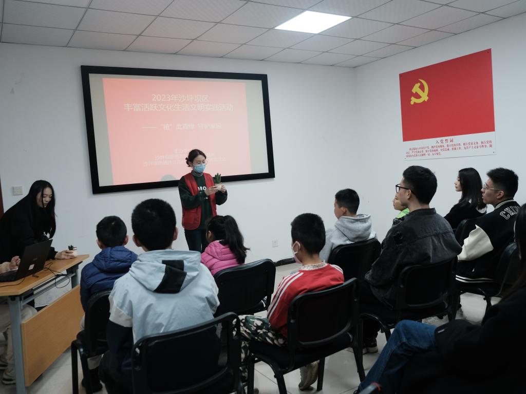 2023年3月12日,郭明义爱心团队公管分队共22名志愿者参与了本次“植此青绿,守护家园”主题志愿者活动。与沙坪坝街道沙正街社区新时代文明实践站合作,组织公共管理研究生志愿者和社区小朋友一起参加义务植树,旨在倡导69书吧