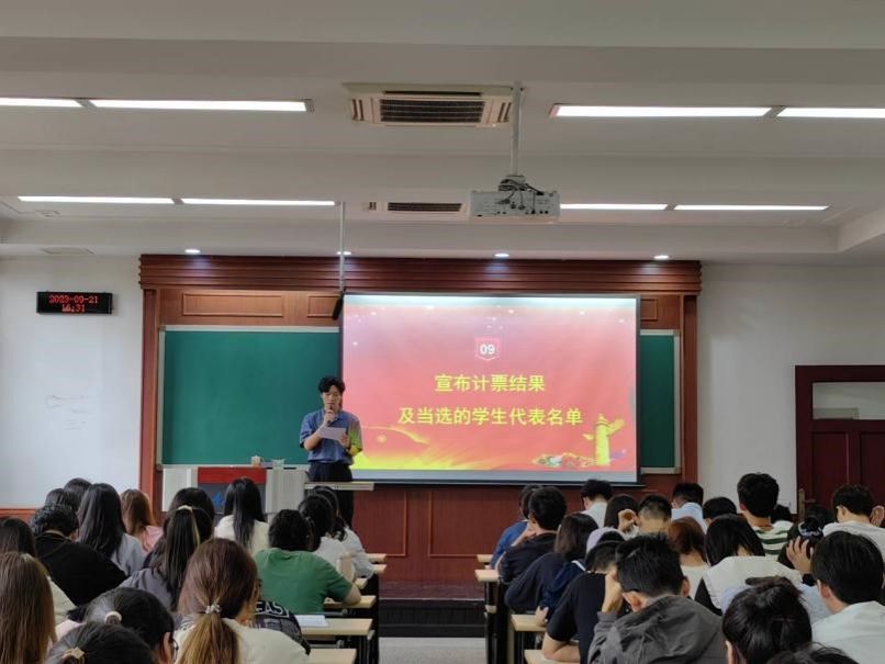 2023年学生代表大会候选人名单、总监票人和监票人名单、总计票人和计票人名单及学生代表大会选举办法,按照校团委、学生会文件要求,本次选举按不少于应选代表名额20%的差额形式进行差额选举。每位代表将从9位候选人中选出7位学生代表大会委员。在详细阅读候选人介绍、进行慎重考虑后,全体与会同学怀着庄严的态度投出了自己的选票。