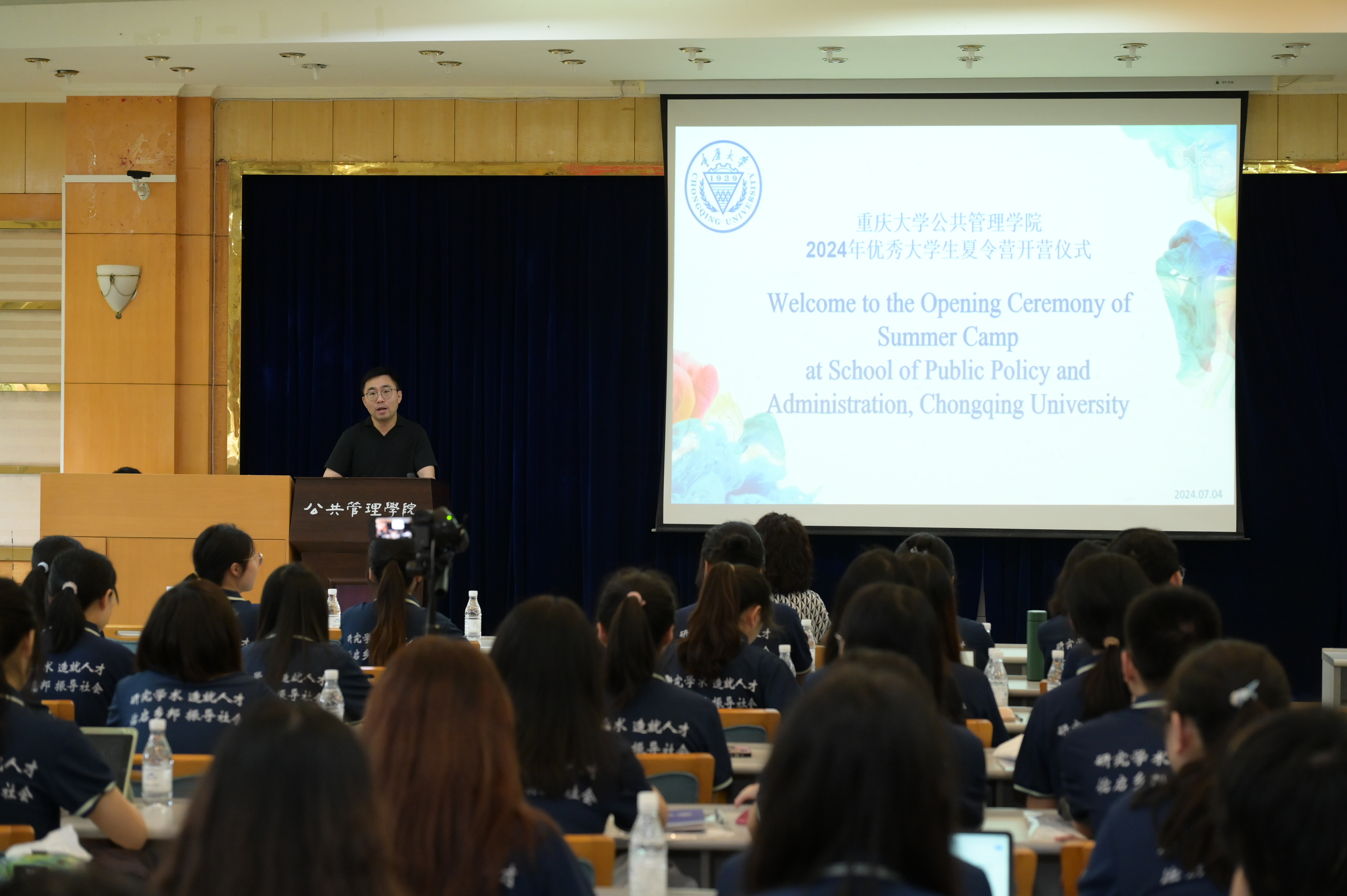 班子成员、教师代表以及全体营员在学院二楼多功能厅现场参加,副院长汪涛教授主持夏令营的开幕式。随着国歌的奏响,优秀大学生夏令营正式拉开帷幕。