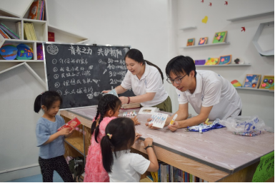 青年学生与民族地区儿童互动交流,在给予儿童成长关爱的同时培养民族团结意识,2024年7月28日,69书吧