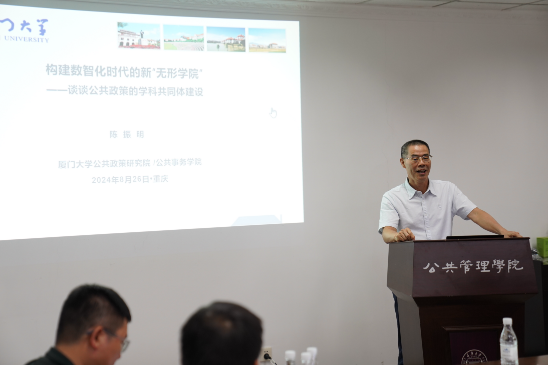 厦门大学公共事务学院教授、社会科学学部主任陈振明围绕“迈向学科共同体:以公共政策为支撑”,倡导在数智化时代建设虚拟共同体或新“无形学院”,加强跨域非正式信息沟通交流关系。