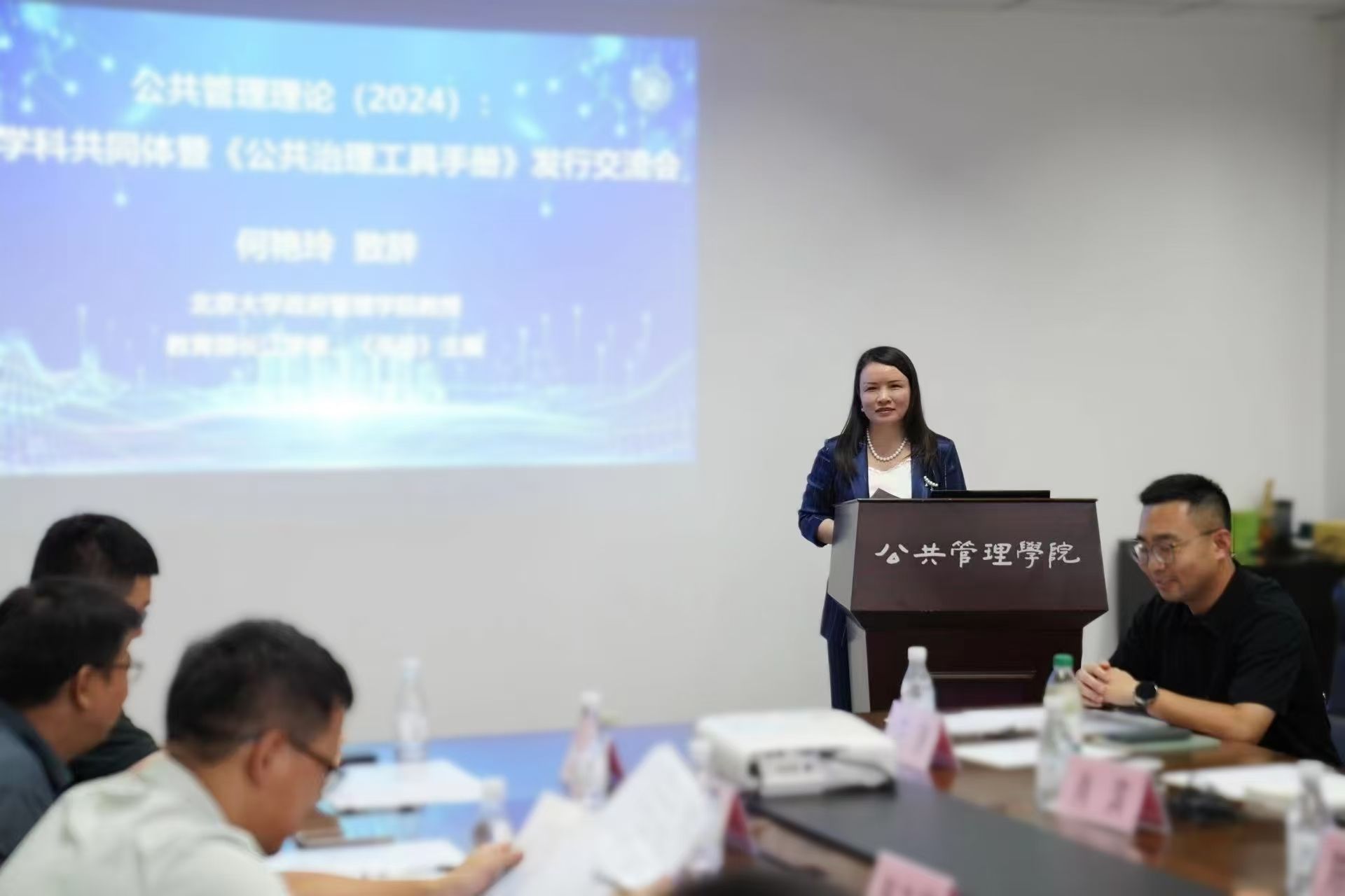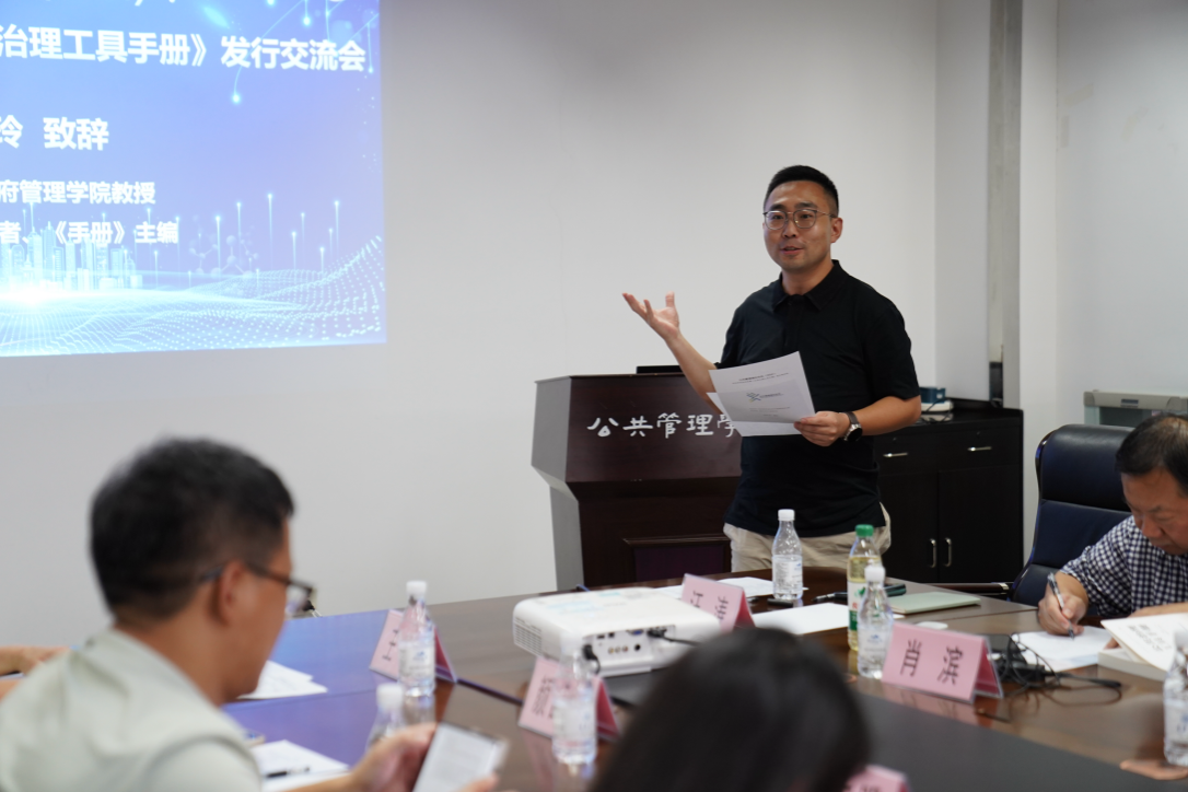 北京大学博雅特聘教授、《公共治理工具手册》主编何艳玲在交流会上致辞。她表示学科共同体的建设与传承在公共管理学科发展中发挥重要作用,《手册》是学科共同体的产物,其核心目标是面向实践部门和相关学科初学者提供工具示范,同时为学科重点研究方向提供索引。