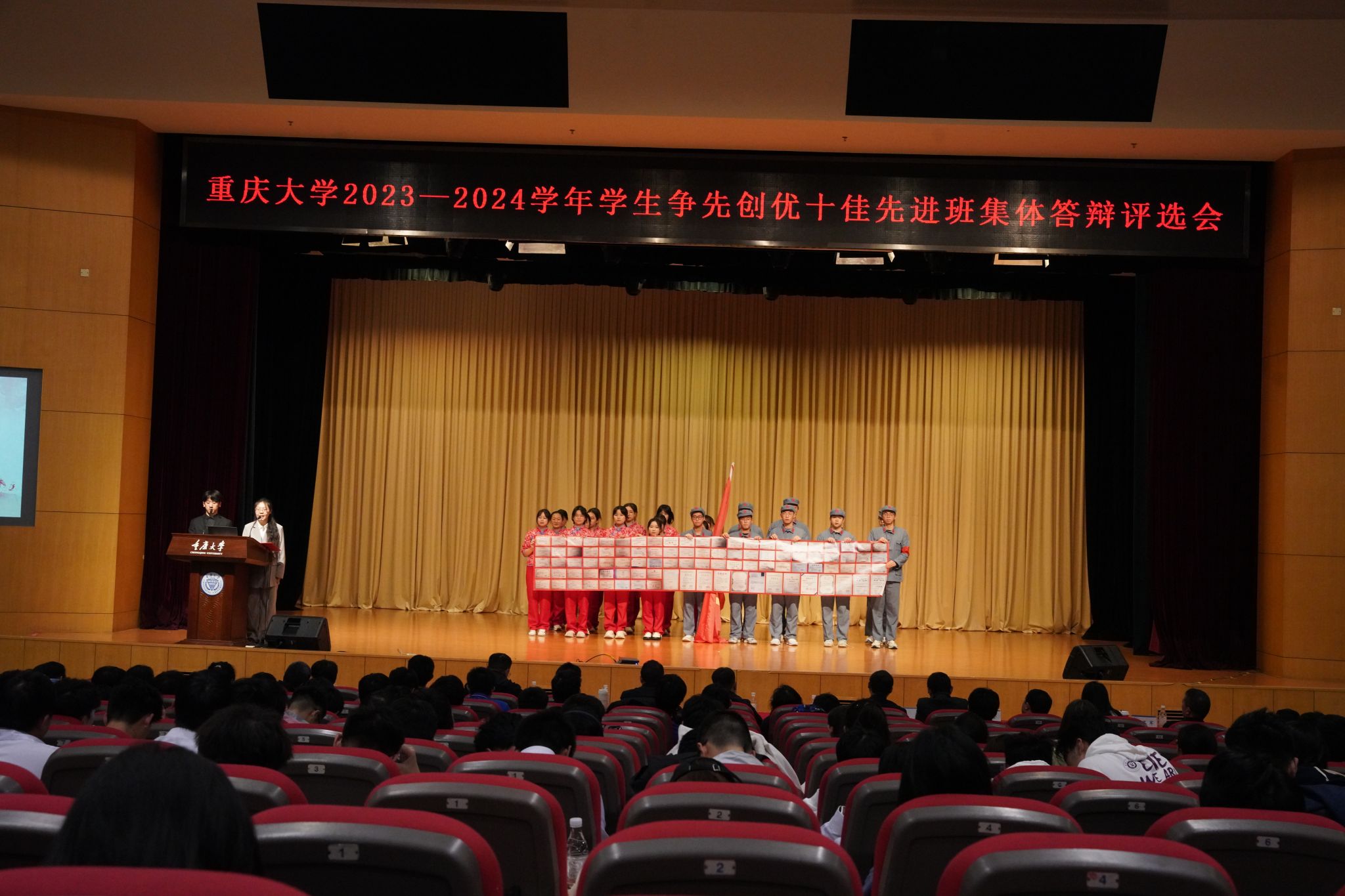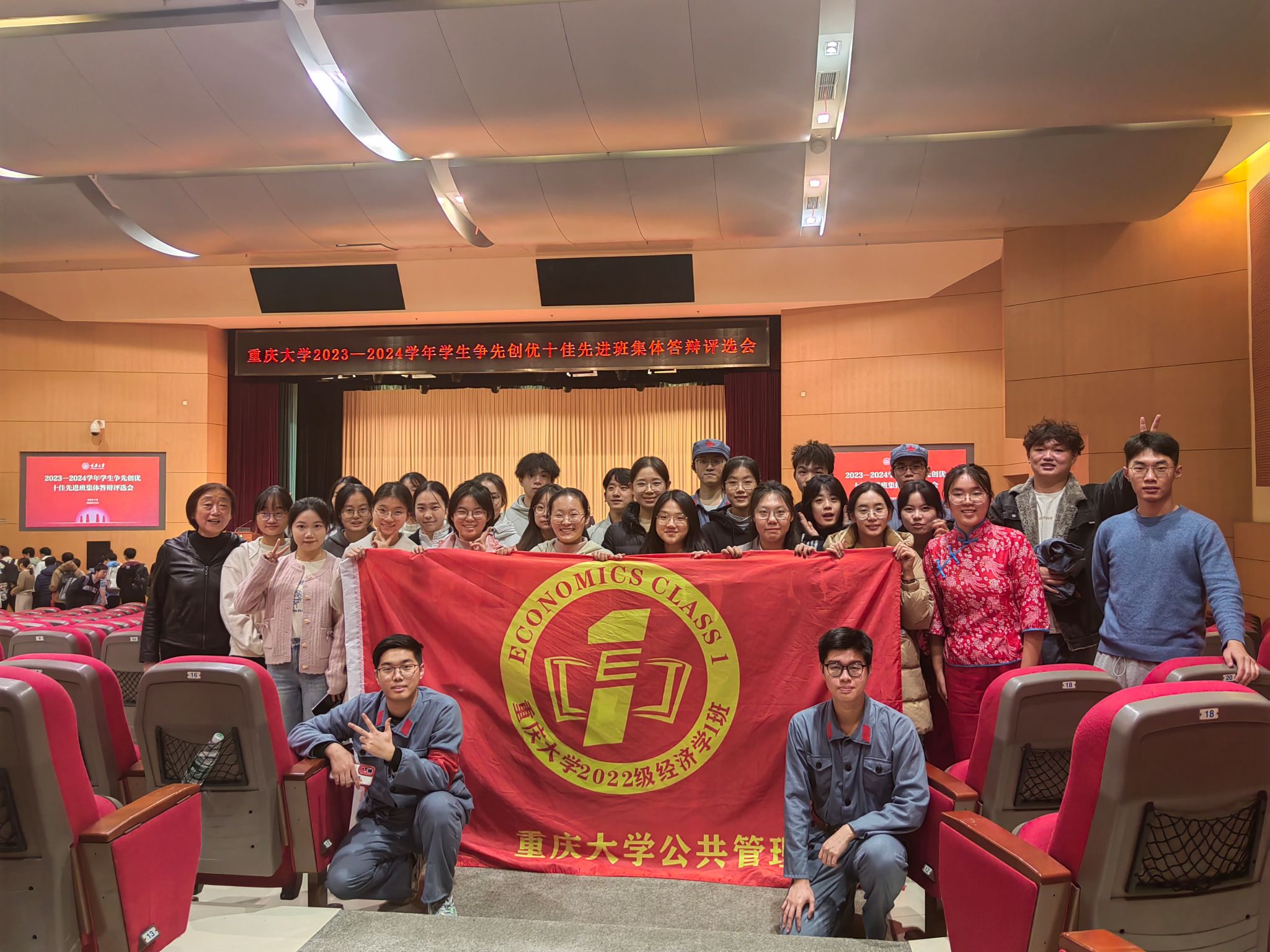 2023-2024学年度十佳先进班集体答辩评选会在A校区主教学楼三楼多功能报告厅圆满落下帷幕。我院本科2022级经济学1班获“十佳先进班集体”荣誉称号。