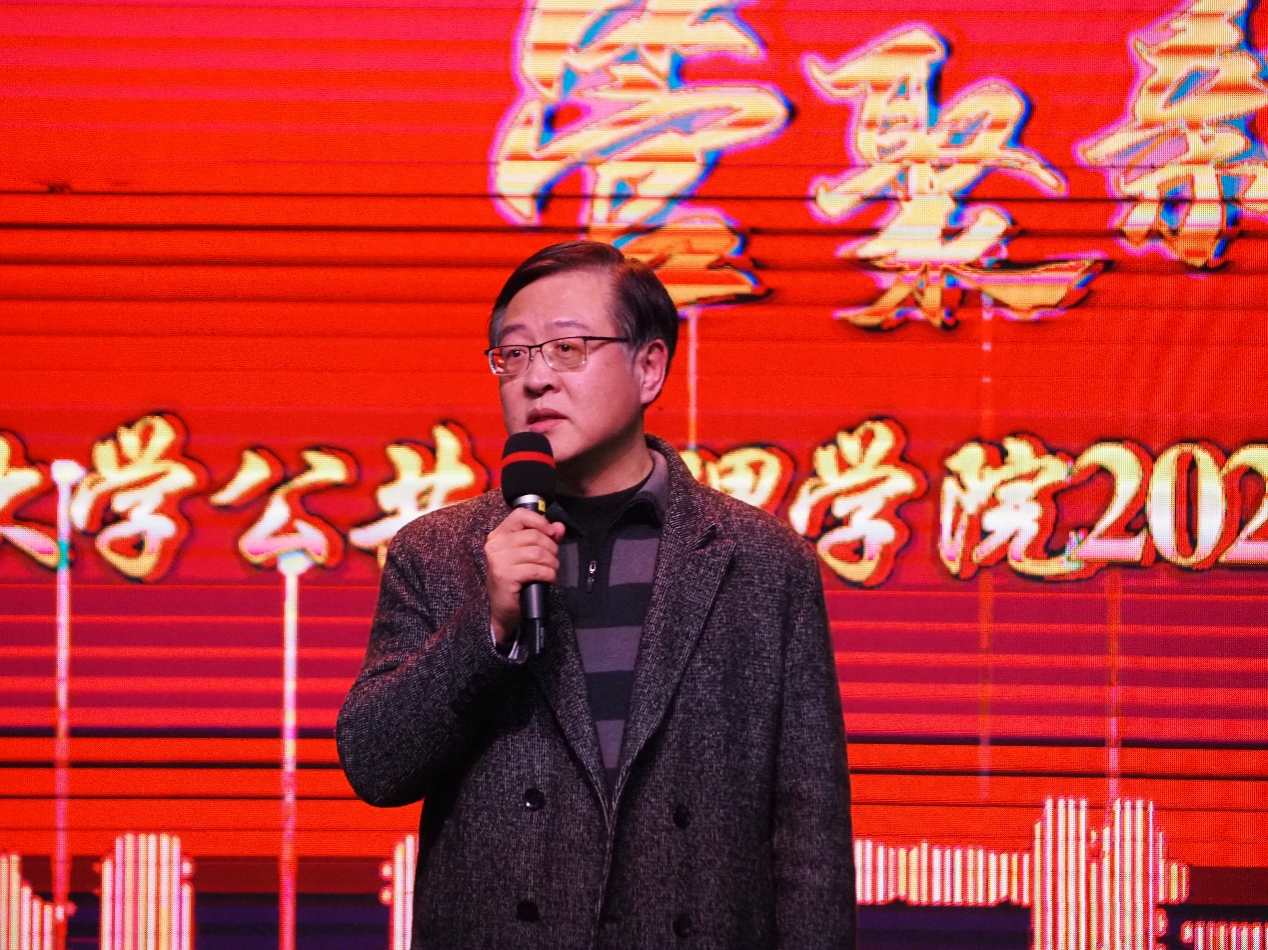 随后,陈东发表致辞,他回顾了2024年学院在教学、科研、人才培养等方面取得的突出成绩,对全体师生的辛勤付出表示衷心感谢。同时,他鼓励同学们在新的一年里坚定理想信念,勇于创新实践,实现个人成长与学院发展的同频共振,携手共创更加美好的未来。