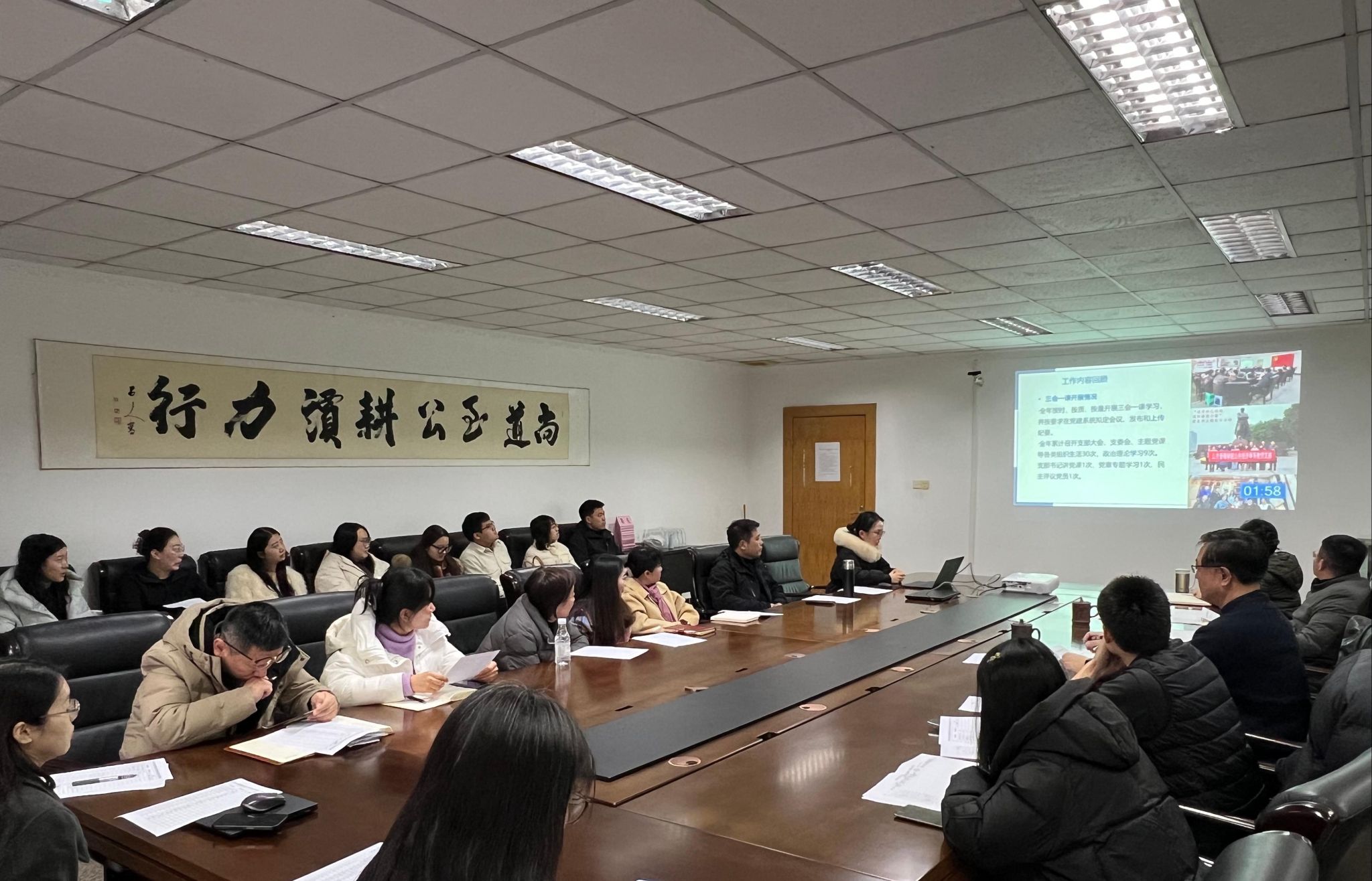 会上22党支部书记围绕学习贯彻习近平新时代中国特色社会主义思想主题主线,巩固拓展主题教育成果,深入开展党纪学习教育,贯彻落实党的二十大及二十届三中全会精神,落实“三会一课”、主题党日,支部书记讲党课,专题学习《中国共产党章程》、开展不合格党员自查等基层党建工作重点任务,汇报了一年来的履职情况、存在的问题及下一步工作举措。