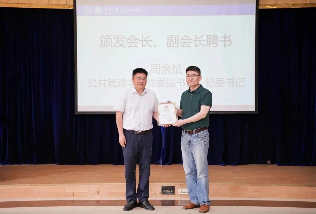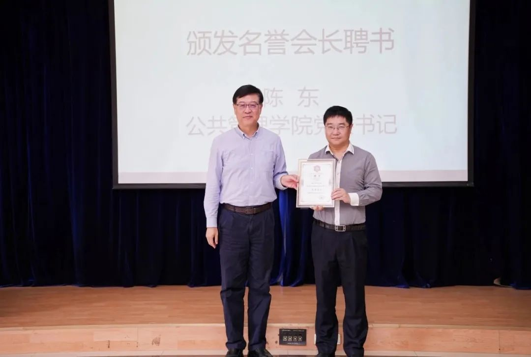 会议举行了公管分会会旗与牌匾的交接。学院领导依次为新当选的公管分会名誉会长、会长、副会长、秘书长、副秘书长和理事颁发证书。郭宏为公管分会新当选的监事长颁发证书。