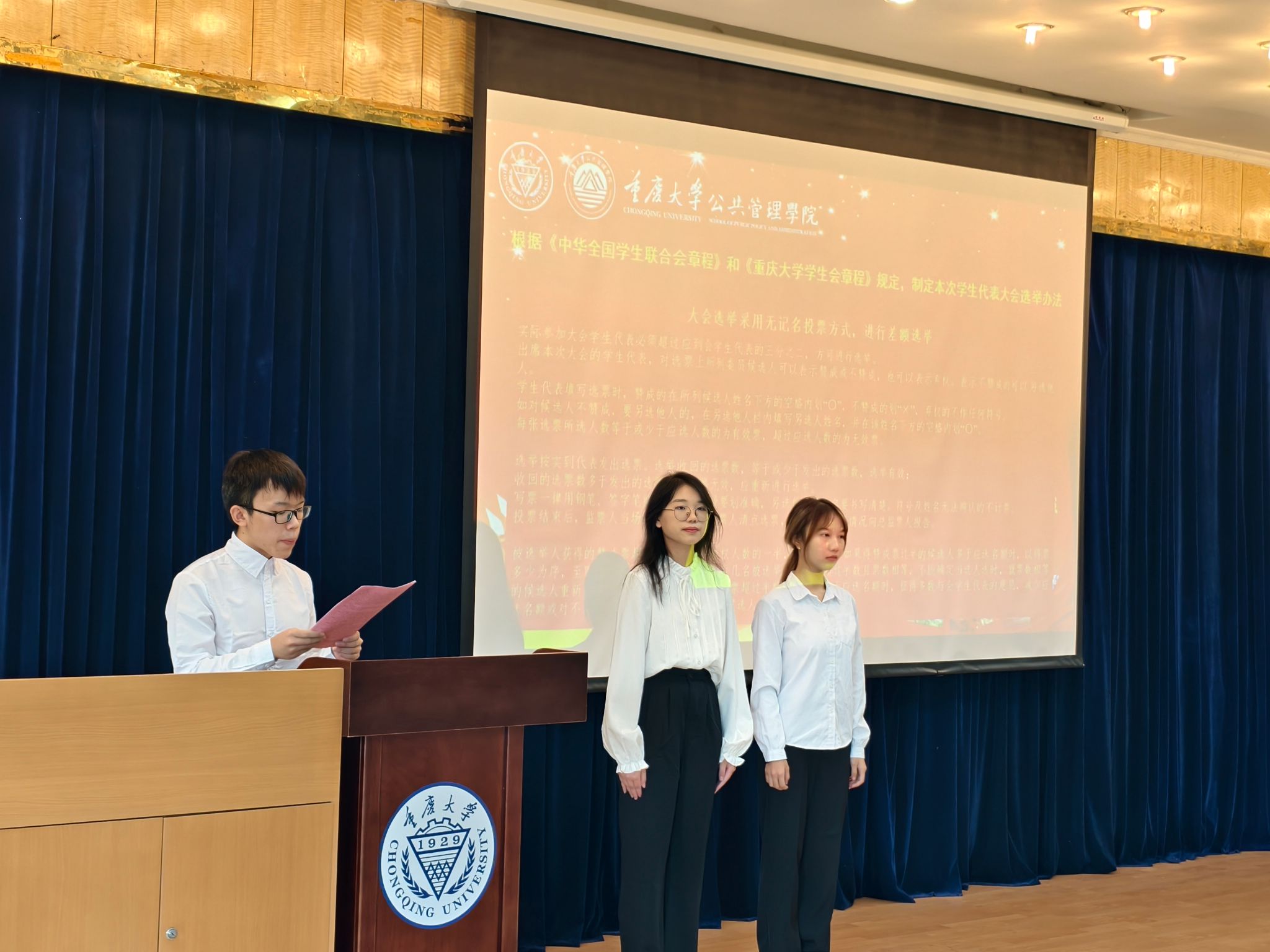大会由学院本科生学生会主席彭宇韩主持。会议伊始,全体参会人员肃立高唱中华人民共和国国歌,大会在庄严的歌声中正式开幕。