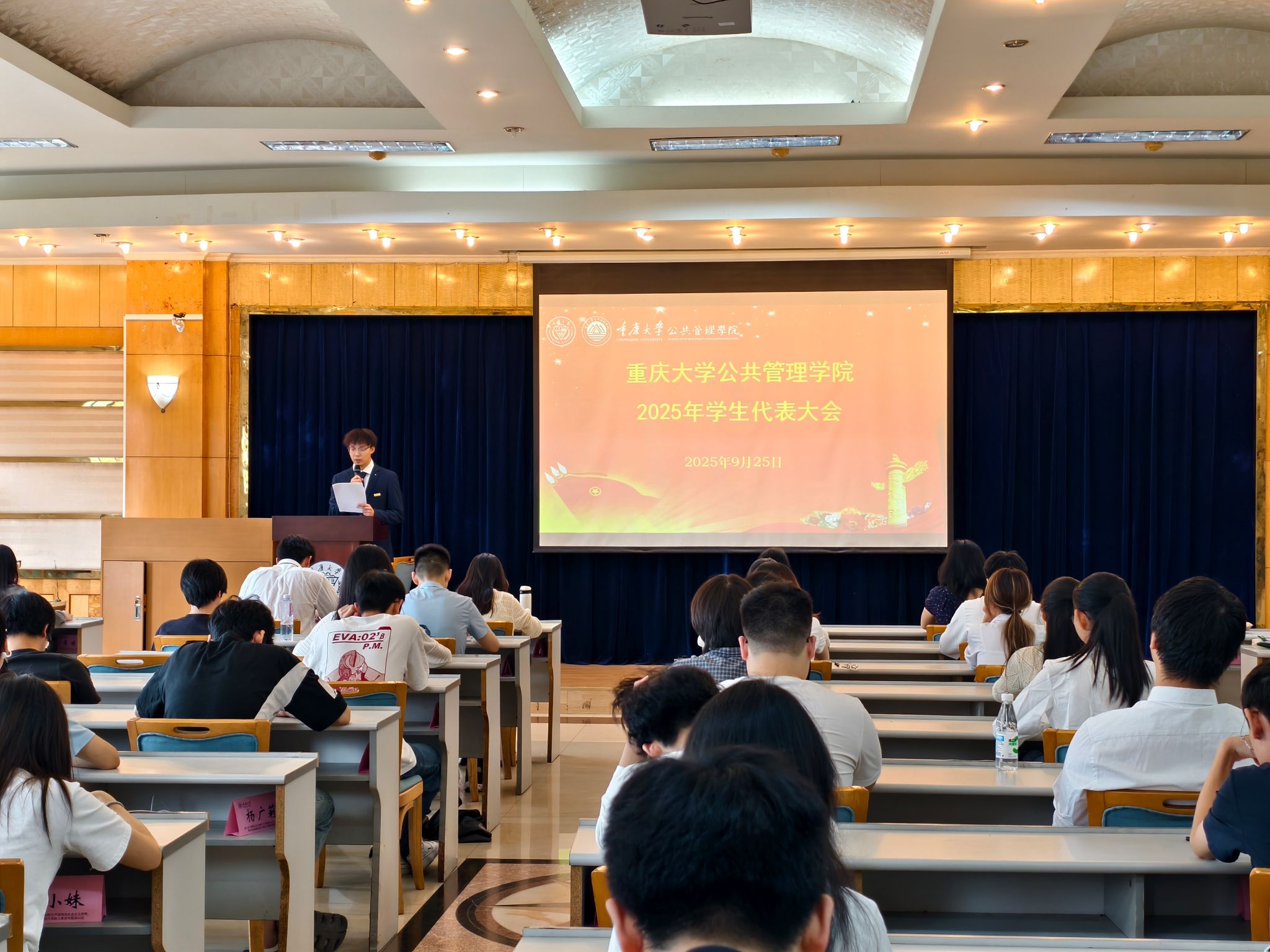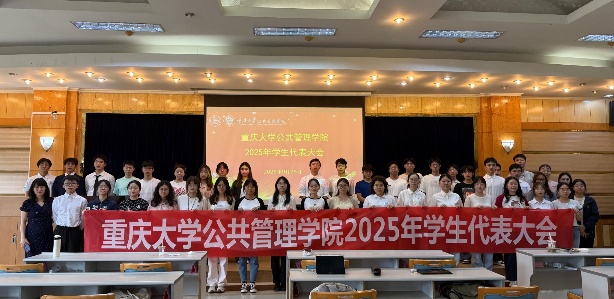 2025年本科生学生代表大会于2025年9月25日13点30分在学院202报告厅顺利召开。学院团委书记、学生会秘书长徐柳老师,以及来自2022级、2023级、2024级的103名本科生代表共同参会。