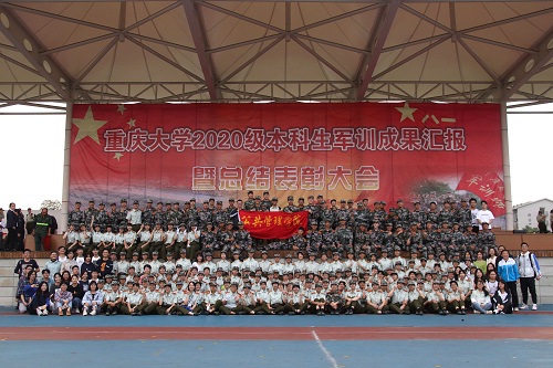 2020级本科生军训成果汇报暨总结表彰大会于虎溪校区风雨操场如期举行。学院男生连队主要参与擒敌拳的表演,女生连队主要参与队列操的表演。学院副书记袁晓浩、学办主任兼19级辅导员王丽娟、研究生兼职辅导员谢镇江以及学院19级团委学生会成员出席并观看本次大会,一同目睹公管学子的风采。