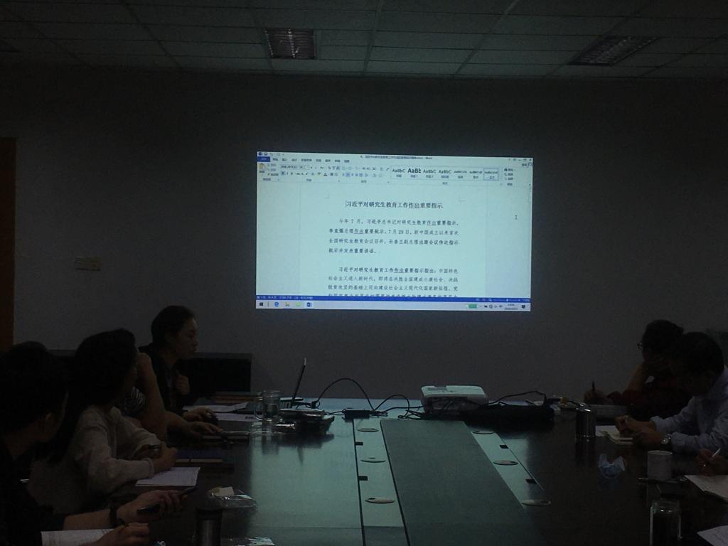 党委在一会议室组织理论学习中心组学习,传达学习习近平总书记对研究生教育工作作出的重要指示精神。学院党委书记张玲主持学习。