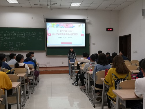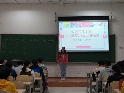 19级团委学生会19级纳新答辩在DYC103教室正式开始。学院学办主任兼18、19级辅导员王丽娟、团委书记兼16级辅导员徐柳、17级辅导员包晗、辅导员助理谢镇江以及团委学生会全体学生干部均出席了此次答辩,本次答辩由各位老师及学生会主席团评分考核。