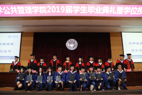 党委书记张玲、学院学位评定分委员会委员和导师代表共同为学院全体2019届毕业生一一拨正流苏、颁发学位证书。