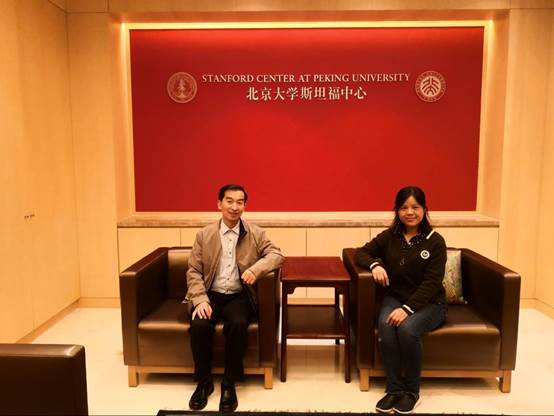 在北京大学斯坦福中心,通过2004级市场营销和英语专业校友邹政介绍,了解建立学院师生对外交流的平台,寻找合作的契机,架设师生国际交往的桥梁。在位于盘古大观写字楼里的北大纵横管理咨询有限公司,与1998级行政管理专业校友瞿超凡、该公司副总裁李勇,就师生实践基地搭建,研究项目合作,学生教育培训机制建立,企业、高校、公司三方衔接方式等进行深入交流。