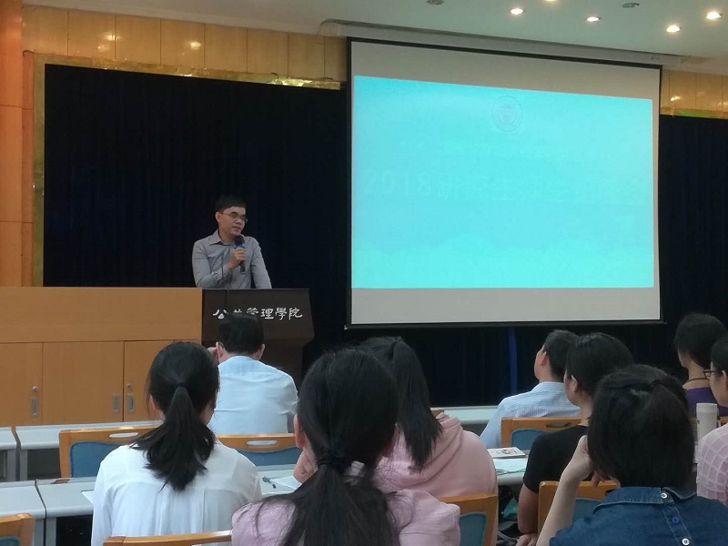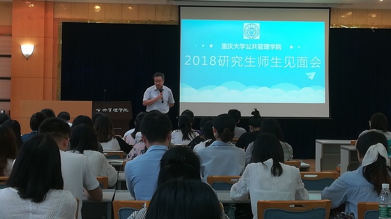 2018级研究生师生见面会于学院楼二楼多功能厅举行。院党委书记张邦辉,院长刘炳胜,副院长刘渝琳,副院长张鹏,院党委副书记、纪委书记刘淳,副院长李志,党委组织员、2017级研究生辅导员何薇、教务秘书刘红老师及100多名研究生新生参加了见面会,由研办主任肖干老师主持。
