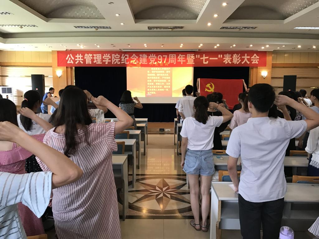 党课结束后,刘淳带领2017年9月--2018年6月新发展党员进行入党宣誓,在场全体党员一起重温入党誓词。