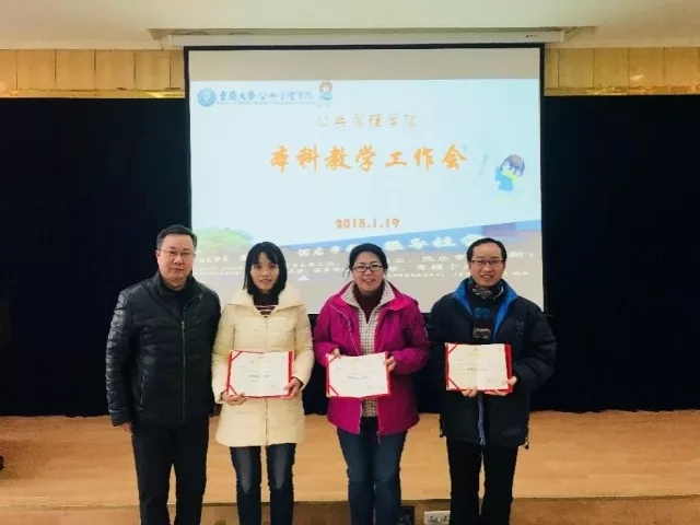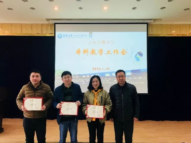 接着,张邦辉为2013-2017年度学院本科优秀教学一等奖、二等奖和三等奖的获得教师颁发了证书,并合影留念。