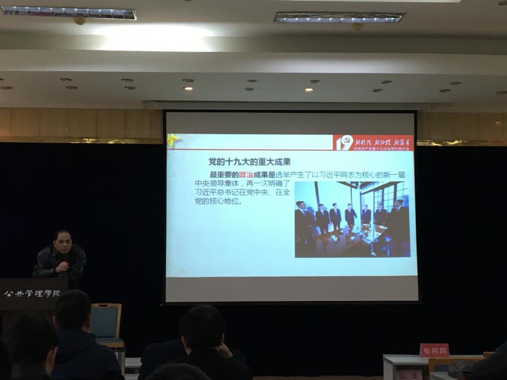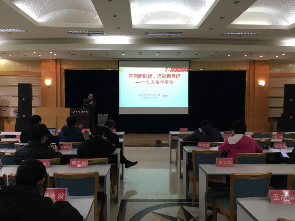 党委在二楼多功能厅举行了党的十九大精神学习宣讲,邀请了马克思主义学院梁平教授作宣讲嘉宾。学院全体教师参加了此次宣讲。