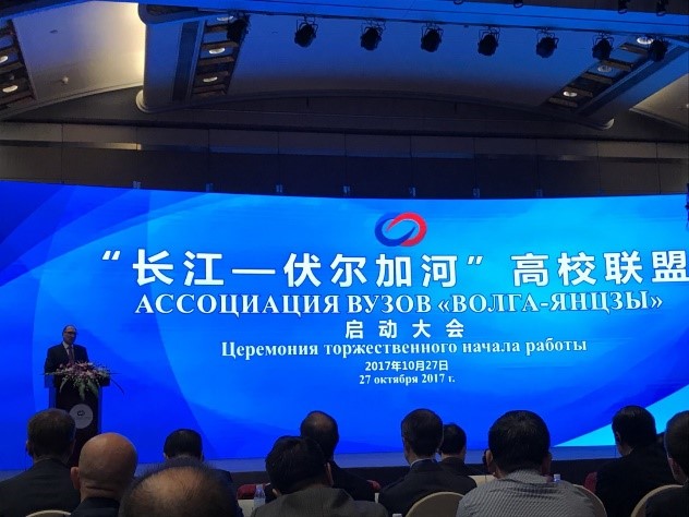 2017年10月27日,中俄“长江—伏尔加河”高校联盟智库论坛在四川省成都市锦江宾馆召开,来自“长江—伏尔加河”高校联盟的36所俄罗斯高校、29所中国高校的校长、专家学者出席启动大会,由四川大学校长谢和平院士担任“长江—伏尔加河”高校联盟中方主席,俄罗斯科学院远东研究所副所长、知名中国问题专家奥斯特洛夫斯基教授担任俄方主席。69书吧