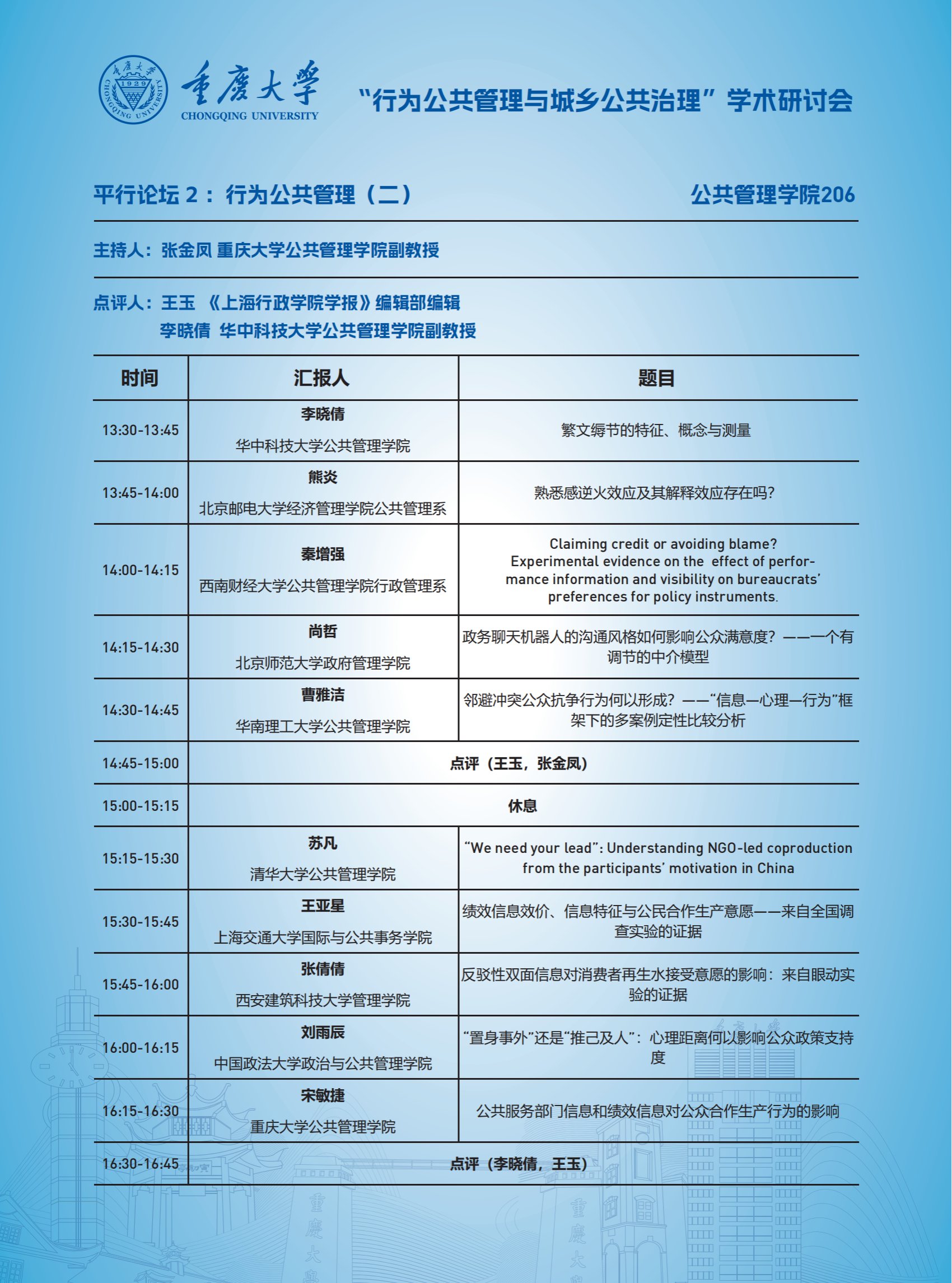 “行为公共管理与城乡公共治理”学术研讨会日程