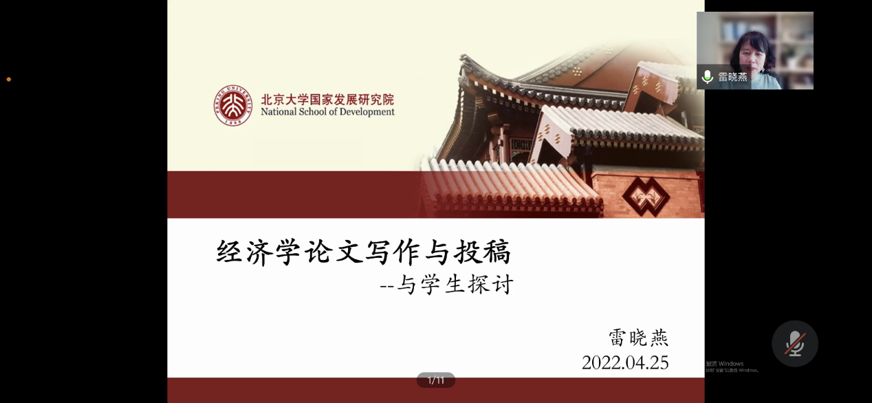 2022年4月25日下午,北京大学博雅特聘教授、国家发展研究院党委副书记、教育部长江学者特聘教授雷晓燕教授应邀为69书吧