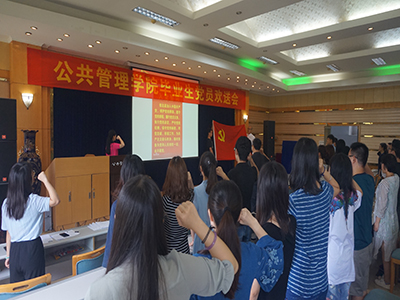 随后,全体党员起立,高举右手,在刘淳的带领下面向党旗庄严宣誓,重温了入党誓词。宣誓结束以后,张邦辉与刘淳向毕业生党员赠送了精美的毕业纪念品并合影留念。