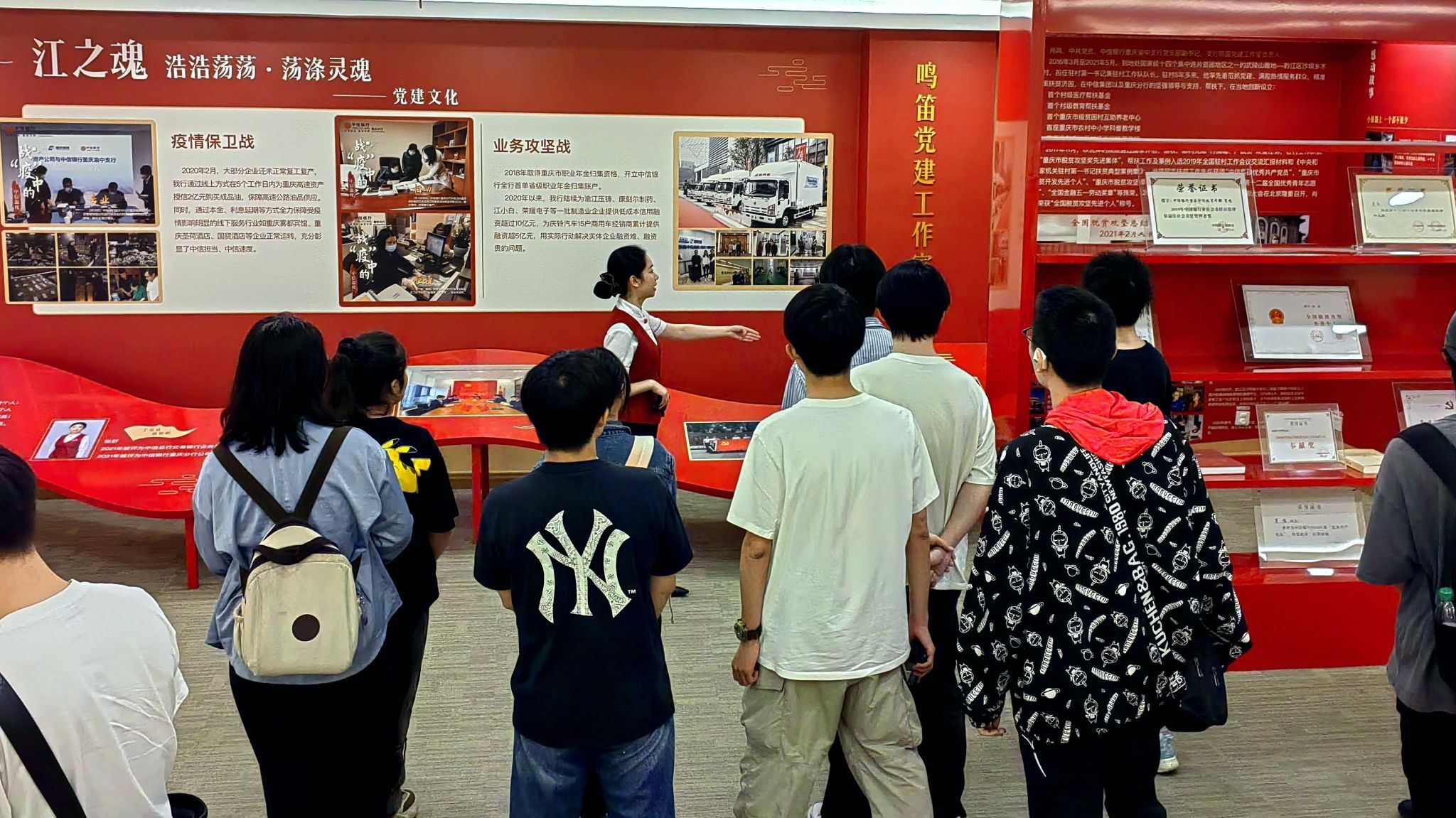参观过程中,师生们还了解到,渝中支行依托中信集团综合金融优势,深耕本地市场,业务覆盖公司金融、零售银行、国际业务等领域,其数字化转型成果与“以客户为中心”的服务理念深度融合。通过历史沿革展区的讲解,同学们进一步认识到中信银行作为改革开放后首批全国性股份制商业银行,40余年来在服务实体经济、推动金融创新中的标杆地位。