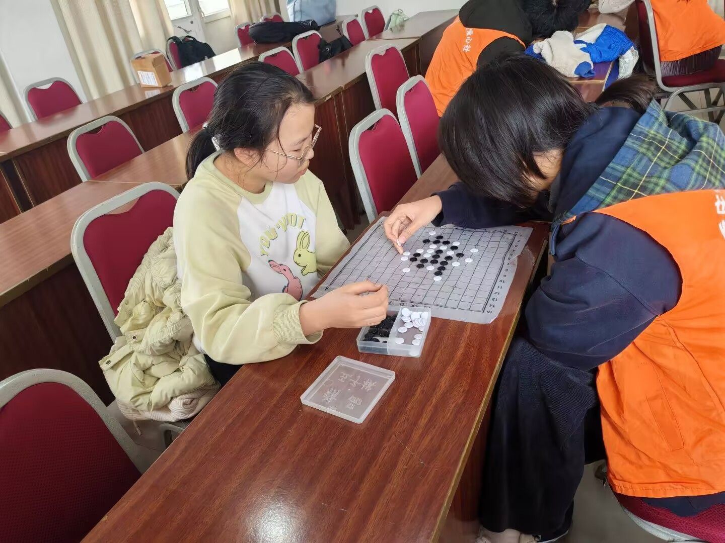 活动当天,走进场地便能看到一幅温馨的画面:志愿者们与小朋友们围坐在一起,其乐融融。在象棋、五子棋区域,志愿者们如同耐心的老师,手把手地引导小朋友下棋。他们一边讲解下棋的策略与技巧,一边鼓励小朋友勇敢思考、大胆落子。棋子碰撞声中,小朋友们逐渐掌握了下棋的要领,脸上洋溢着自信的笑容。志愿者们就像雷锋一样,用自己的知识和耐心,为小朋友们打开了智慧的大门。