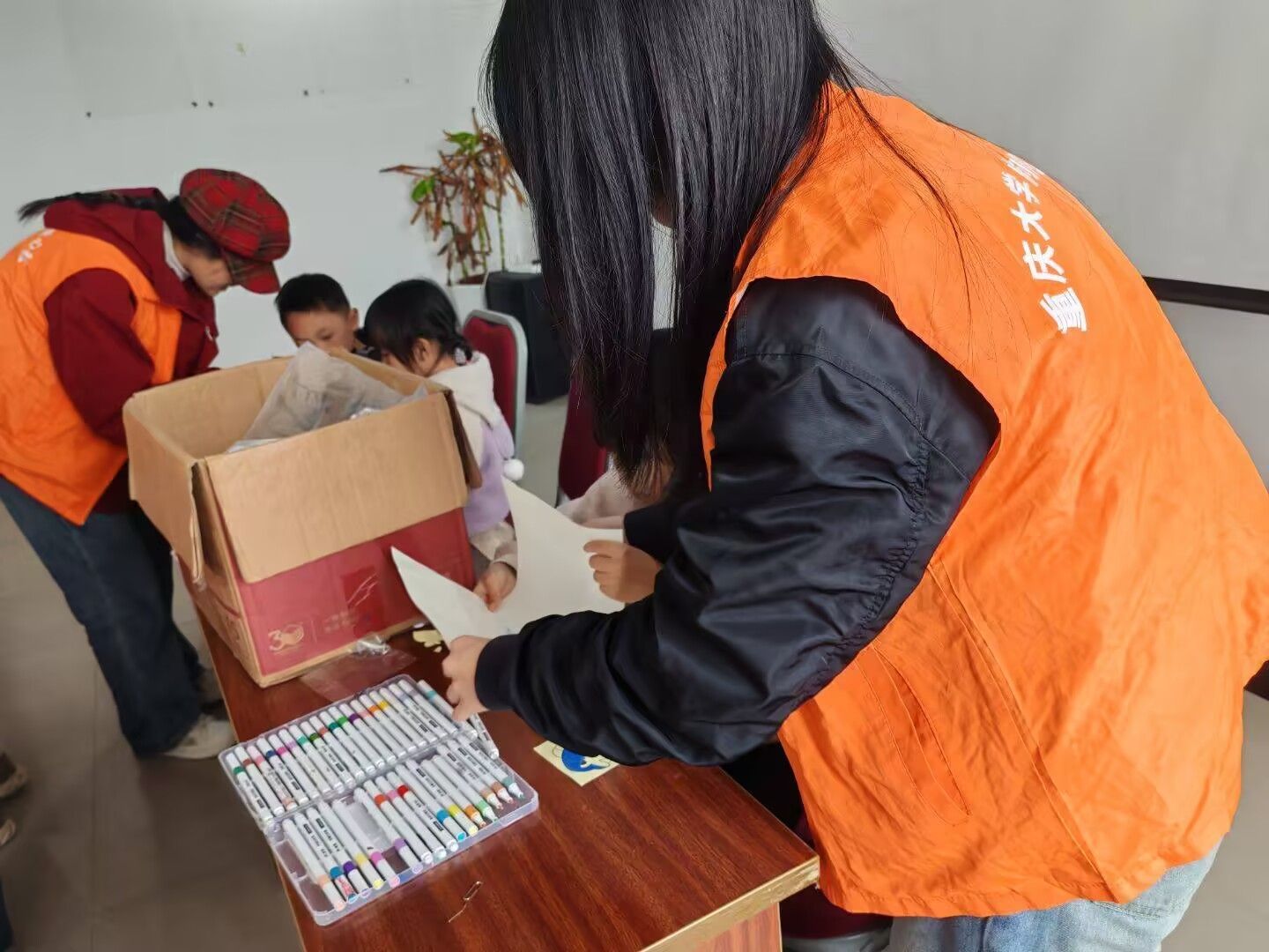 在绘画区域,彩笔在画纸上飞舞,志愿者与小朋友一同发挥天马行空的想象。他们共同描绘着心中美好的世界,有的画着蓝天白云下的城堡,有的画着和家人一起的欢乐场景。欢笑声、讨论声交织在一起,现场充满了温馨的氛围。志愿者们积极地帮助小朋友调整色彩、完善构图,让每一幅画作都更加生动。这正是雷锋精神中关爱他人、奉献自我的体现,志愿者们用陪伴和帮助,让小朋友们的内心充满阳光。