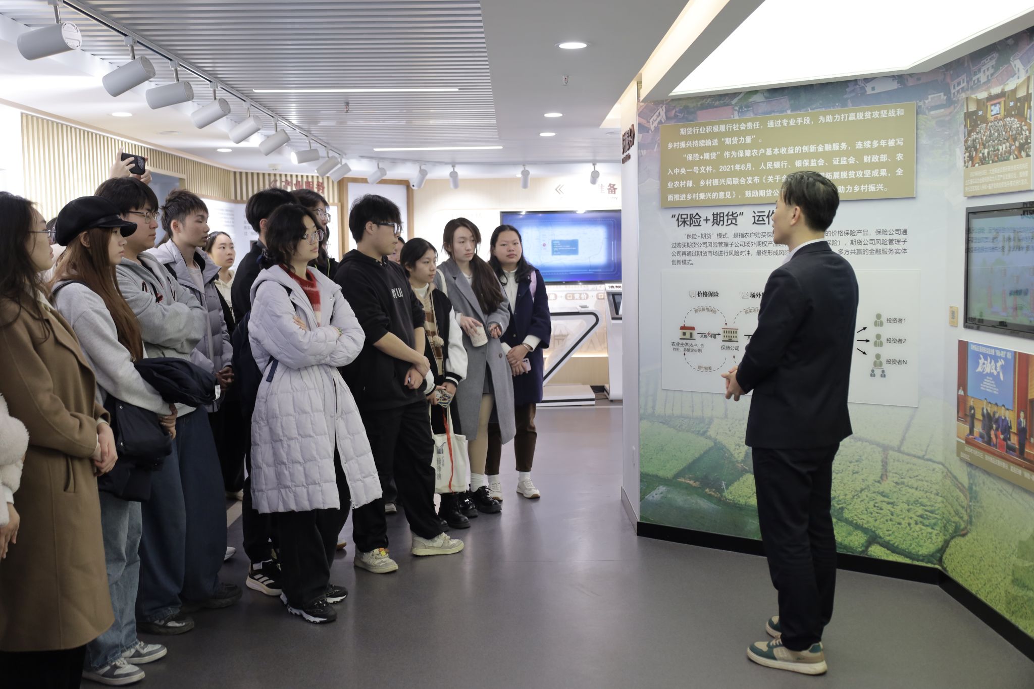 在中信建投期货投教基地的讲解老师刘帅康带领下,全体同学参观名企内部共八个功能区域——渝时俱进,展现期货发展历史;渝道正源,普及解读金融知识;渝富兴邦,融合服务实体与财富管理;渝警杜渐,揭示金融理财潜在风险;渝教于乐,互动体验期货魅力;渝新普惠,多样化展示投教产品;渝云博学,交流分享投资理念;意见征集,集思广益改进服务水品。