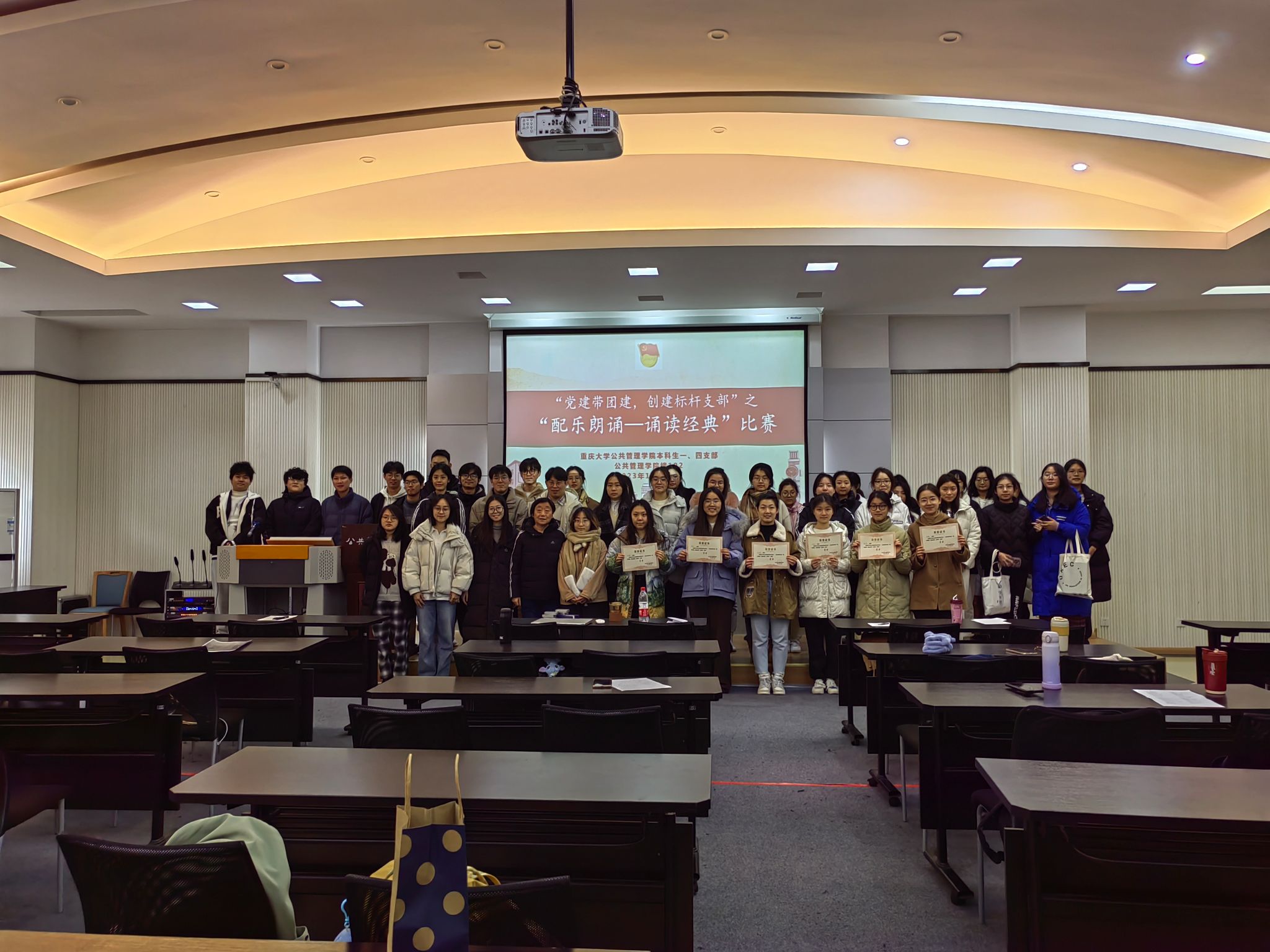 本科生一、四支部于学院楼102教室举行“党建带团建,创建标杆支部”之“配乐朗诵——诵读经典”比赛,本次活动由69书吧