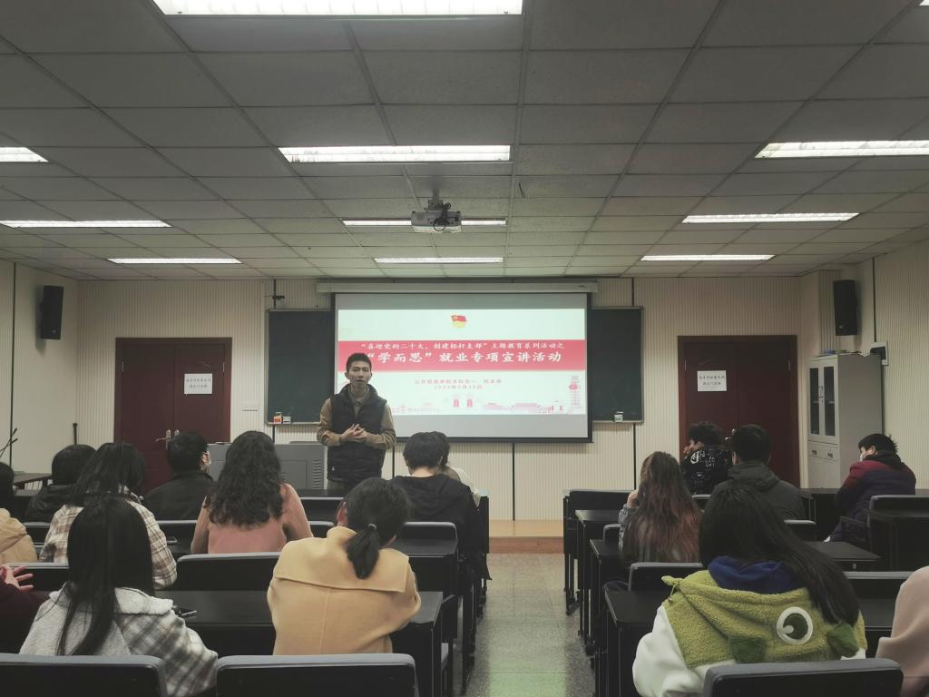 19级专场招聘会。本次招聘会由学办主任、19级辅导员王丽娟主持,学而思网校重庆区域校长唐老师主讲,2019级部分同学到场聆听,并在现场投递简历。