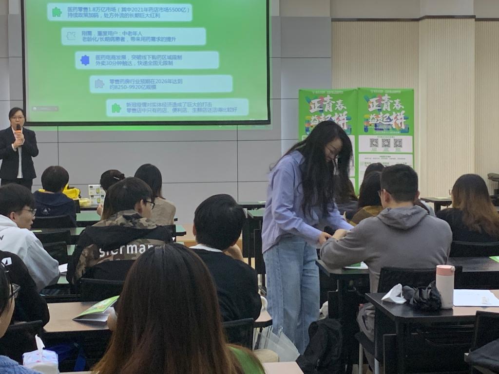 本科生一支部组织委员陈烨靖同志主持,邀请了长沙市益丰大药房的张部长和熊经理开展宣讲活动。本科生一、四支部全体党员全部参会,其中,未返校人员线上参会。