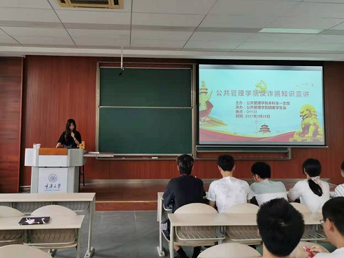 诚信宣讲”活动。活动由学院本科生一支部主办、学院团委学生会承办,宣讲活动由学办主任19级辅导员王丽娟主持,20级辅导员李珊珊到场参加,19、20级的全体党员和入党积极分子积极参与了本次宣讲活动。