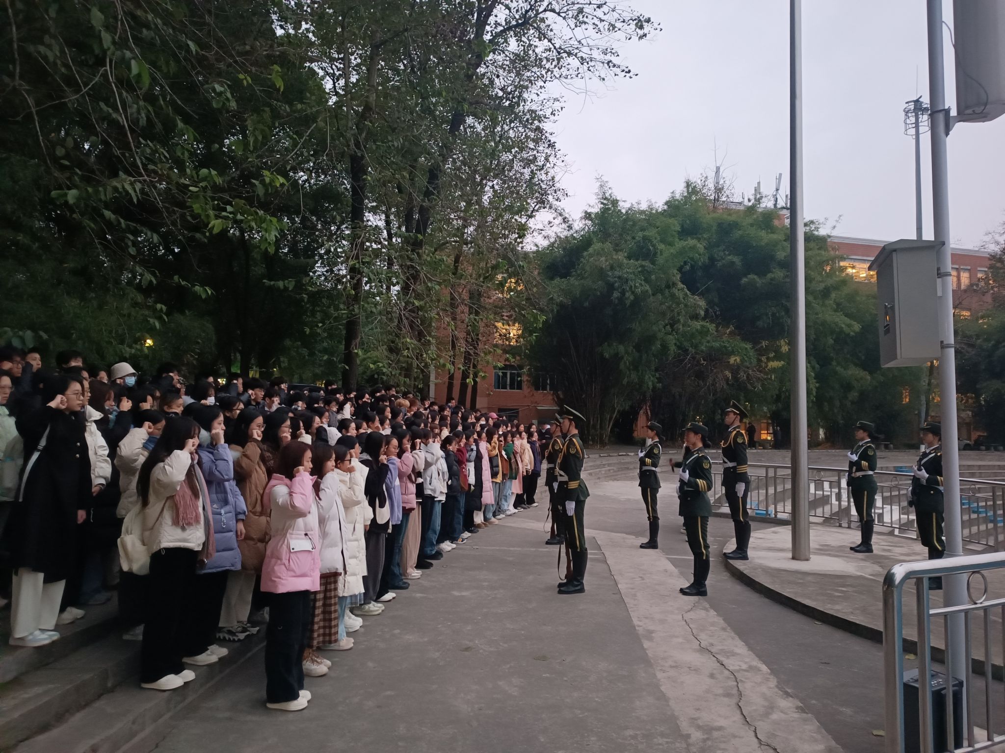 升旗仪式暨党建带团建主题活动,学院团委书记兼本科2023级辅导员徐柳老师带领70名公管学子到场参加。