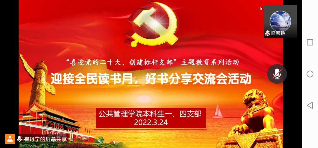 本科生一、四支部于线上举行“喜迎党的二十大,创建标杆支部”主题教育系列活动之“迎接全民读书月,好书分享交流会”活动。