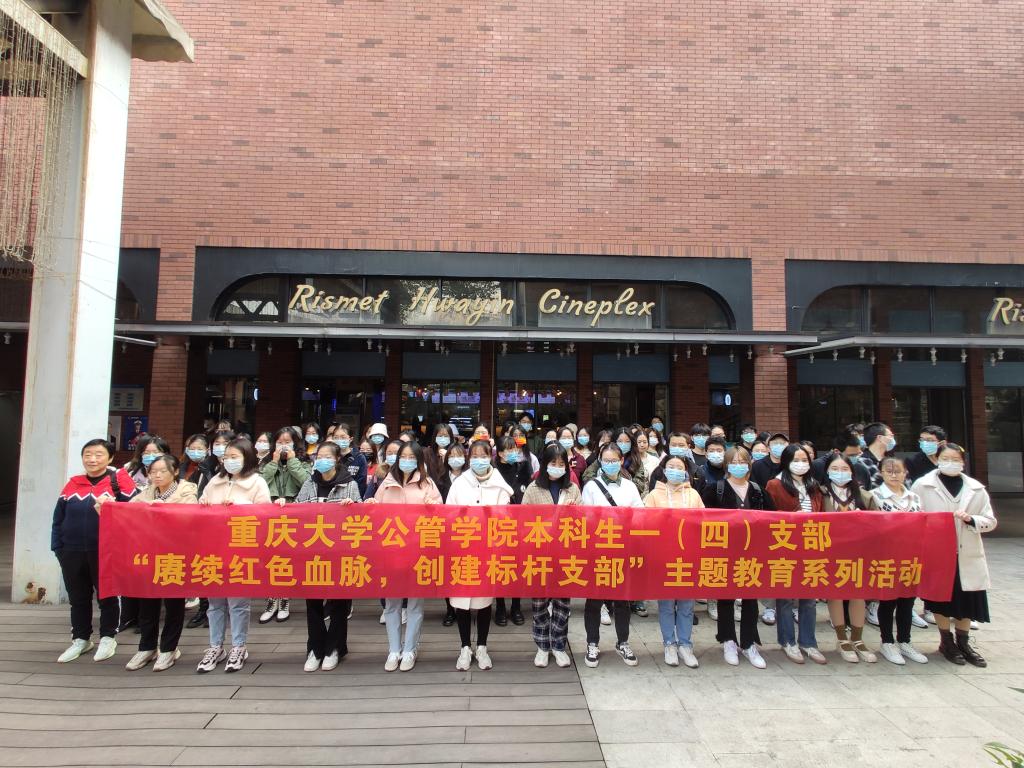 本科生一支部书记王丽娟、四支部书记李阳阳带领本科生一、四支部全体党员于沙滨路利美华胤影城参加“赓续红色血脉,创建标杆支部”主题系列活动之“观红色影片,抒爱国情怀”《铁道英雄》观影活动。